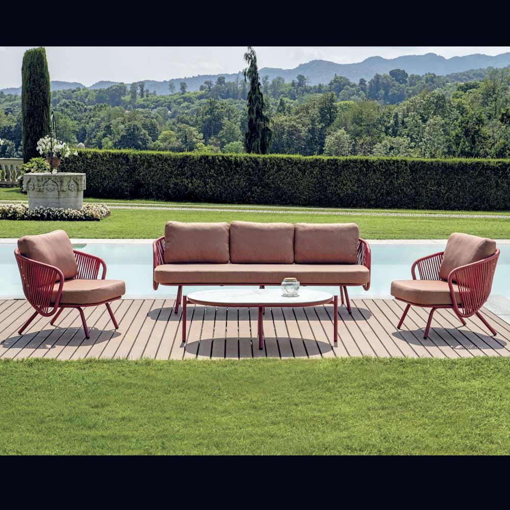 Este garden lounge é a solução ideal para quem procura um equilíbrio perfeito entre elegância e conforto. Composto por poltronas e sofá com almofadas estofadas e uma mesa de café robusta, este conjunto é o complemento ideal para desfrutar de momentos relaxantes ao ar livre. O design moderno e as linhas simples enquadram-se perfeitamente em qualquer ambiente exterior, desde pátios espaçosos a jardins acolhedores.