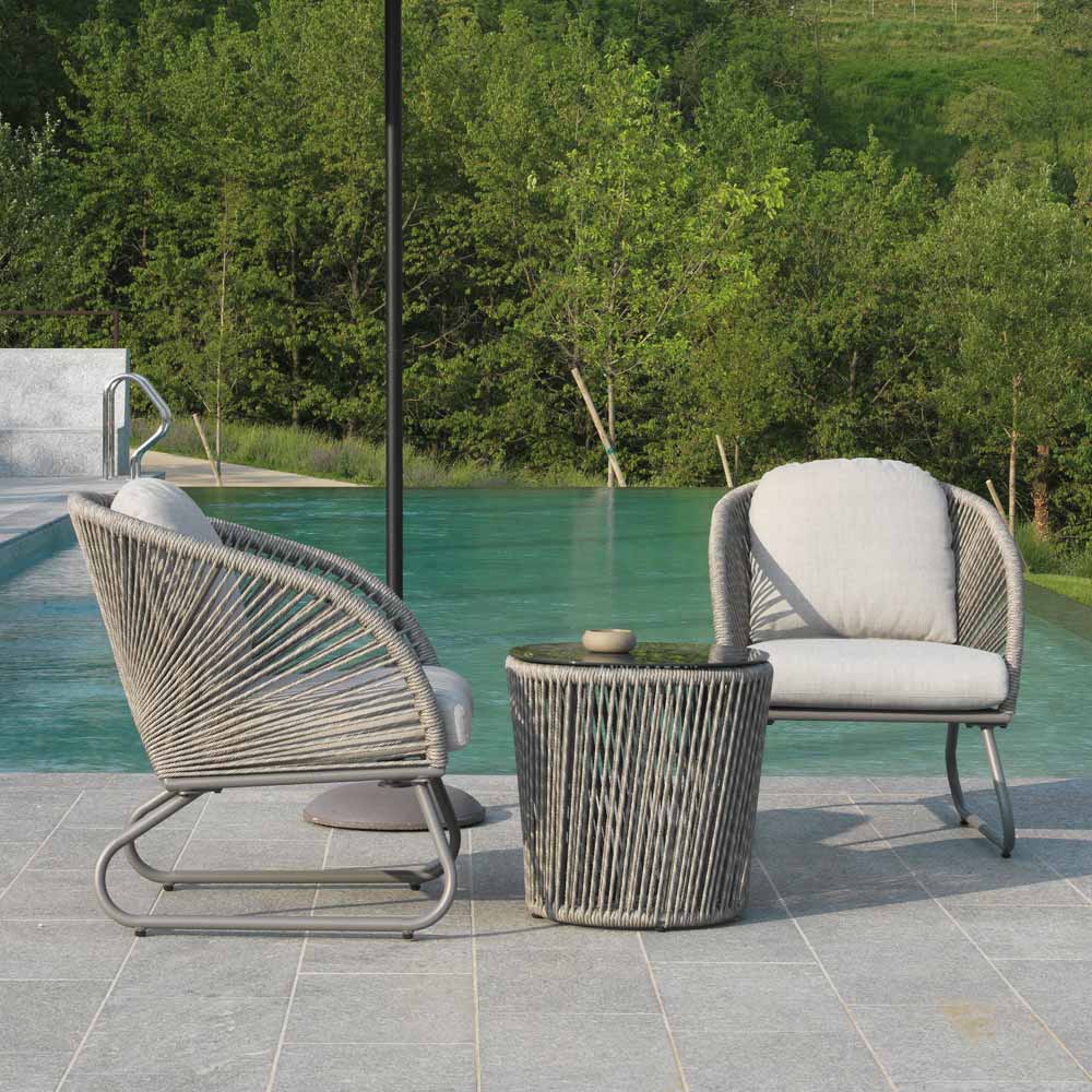 Descubra o charme e o conforto da nossa sala de estar , uma fusão perfeita de estilo e funcionalidade para o seu espaço ao ar livre. As poltronas oferecem conforto superior com suas almofadas acolchoadas em tons de cinza, ideais para longos momentos de relaxamento sob o sol ou sob as estrelas.