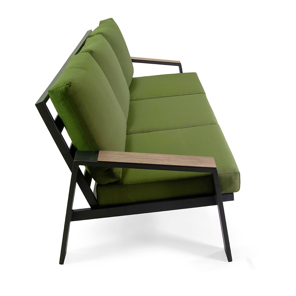 Este conjunto de lounge de alumínio verde-oliva , enriquecido com almofadas luxuosamente acolchoadas , oferece uma atmosfera fresca e natural para o seu espaço ao ar livre. O conjunto inclui um sofá de três lugares , duas poltronas individuais e uma mesa de café robusta com um tampo HPL com efeito de madeira, perfeita para criar um canto de conversa elegante e acolhedor no seu jardim ou pátio. O design moderno com linhas limpas e cores brilhantes integra-se perfeitamente em qualquer contexto ao ar livre, adicionando um toque de estilo e conforto.