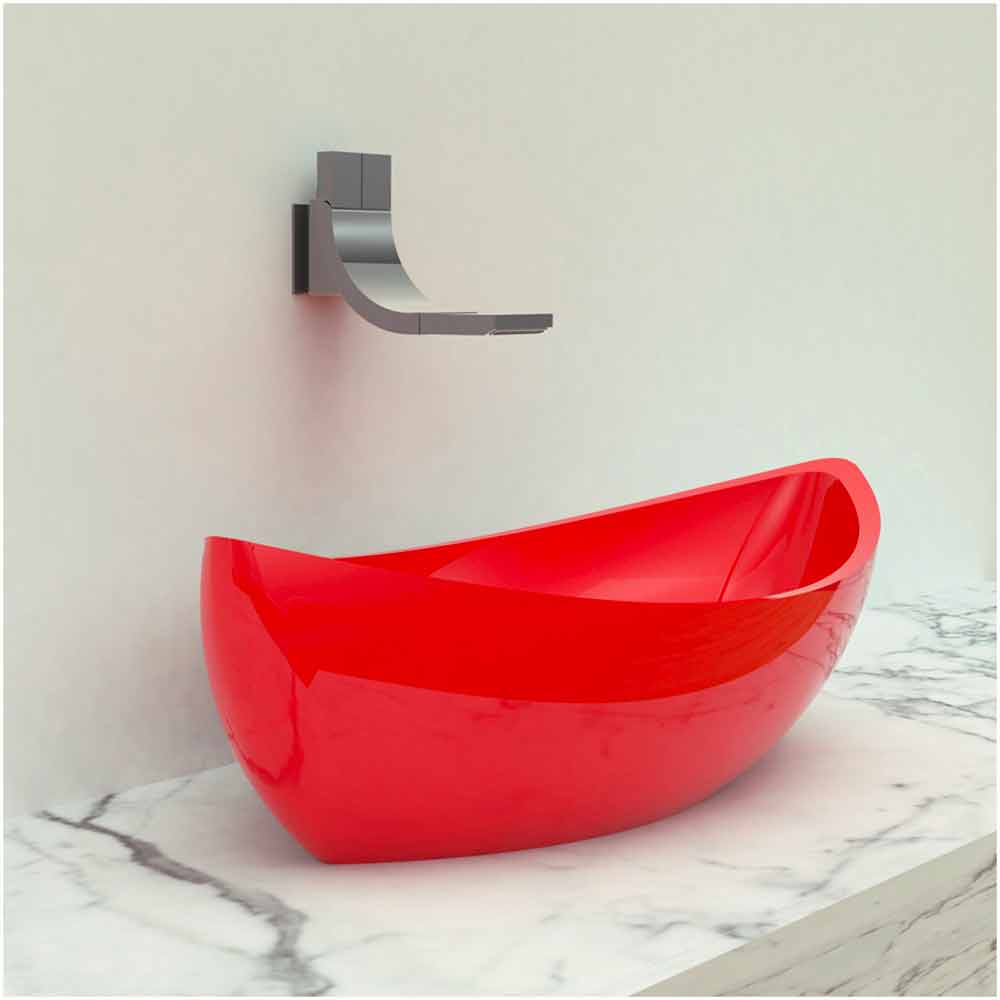 O conceito do lavatório Sashimi segue as mesmas linhas da banheira Funamori, um pequeno barco de madeira no qual sushi e sashimi são servidos em restaurantes japoneses.