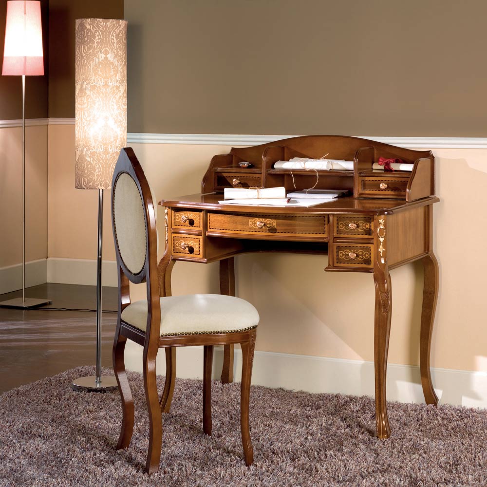 Secretária de estilo clássico em madeira nobre com acabamento em nogueira com elegantes incrustações em ouro, completa com 7 gavetas e prateleira prática . Ideal para mobiliar com elegância qualquer ambiente. Um complemento único e refinado, totalmente feito na Itália por mestres artesãos qualificados , finalizado com sabedoria e gosto pela elegância. A produção é realizada com materiais nobres , realizando o trabalho à mão com o máximo cuidado e profissionalismo que distingue os produtos Made in Italy .