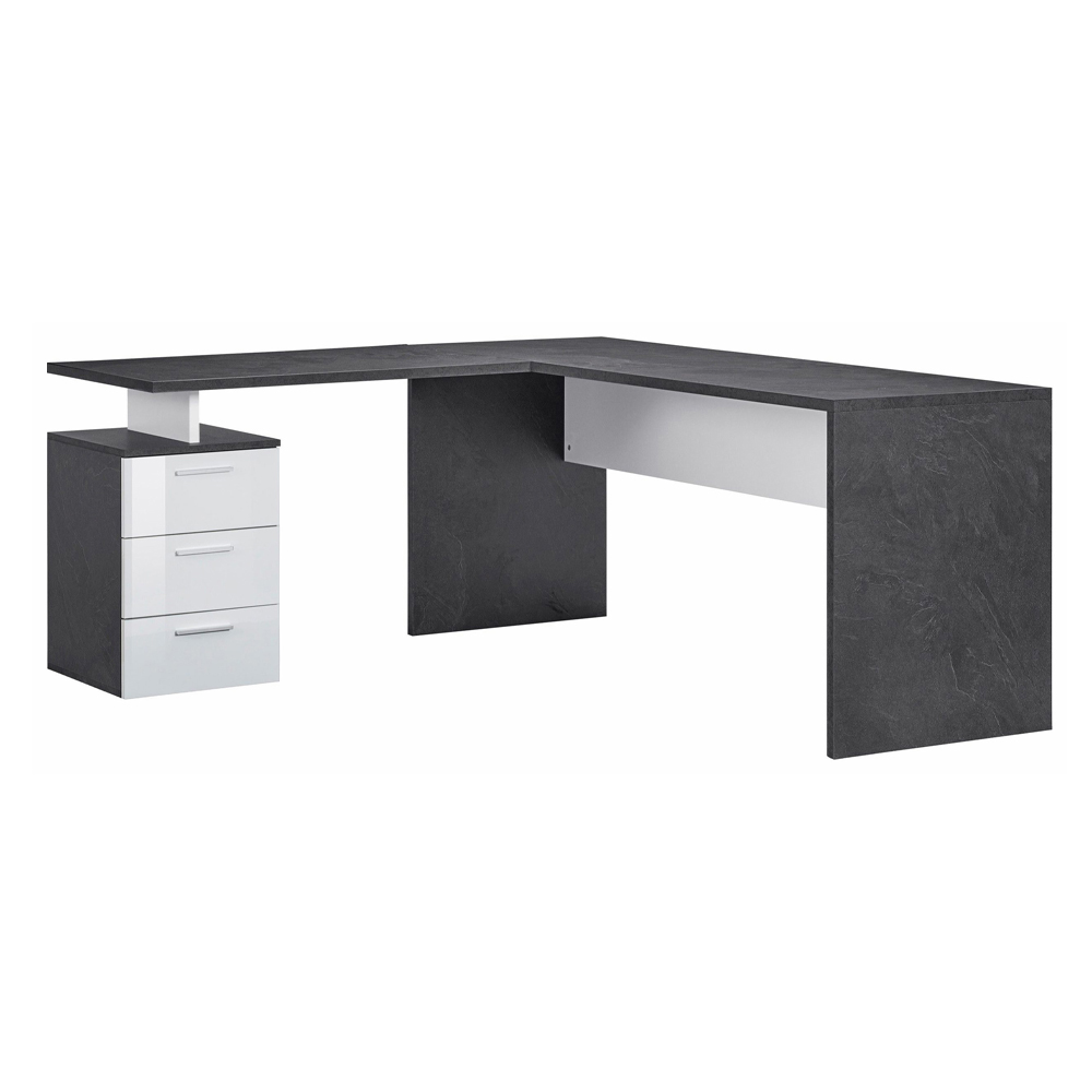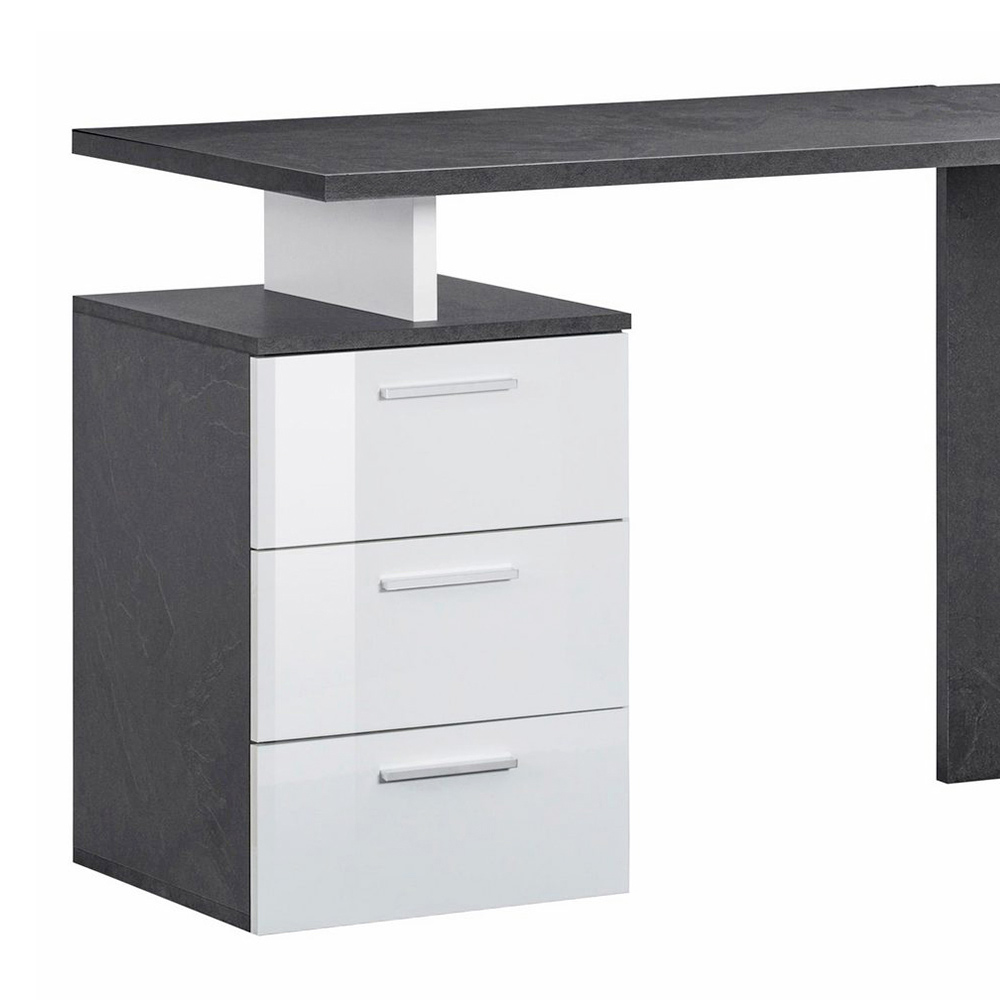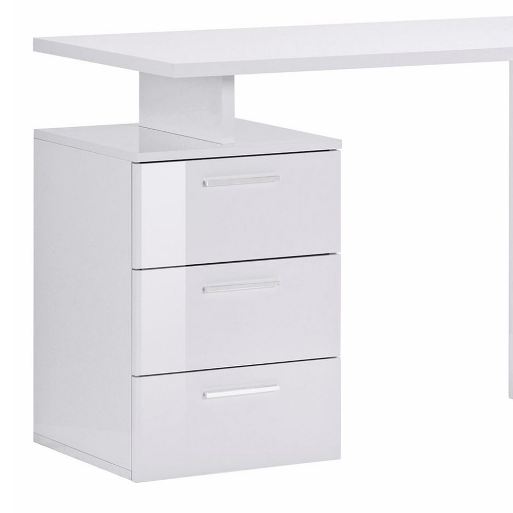 cómoda com 3 gavetas. Disponível em dois acabamentos, a secretária pode ser facilmente combinada