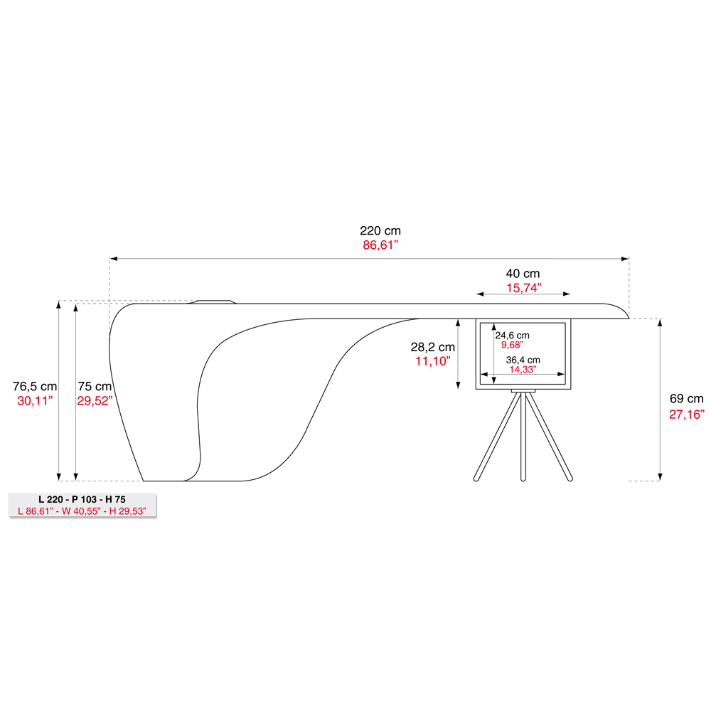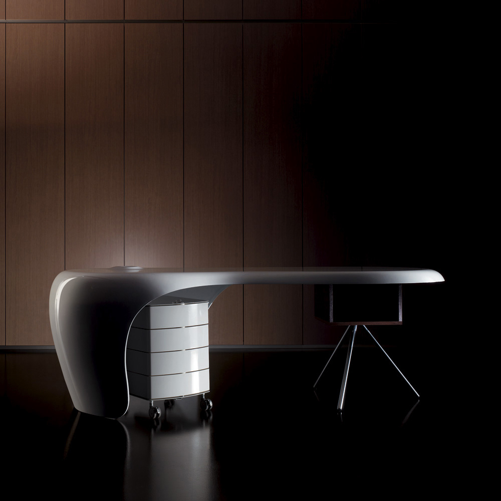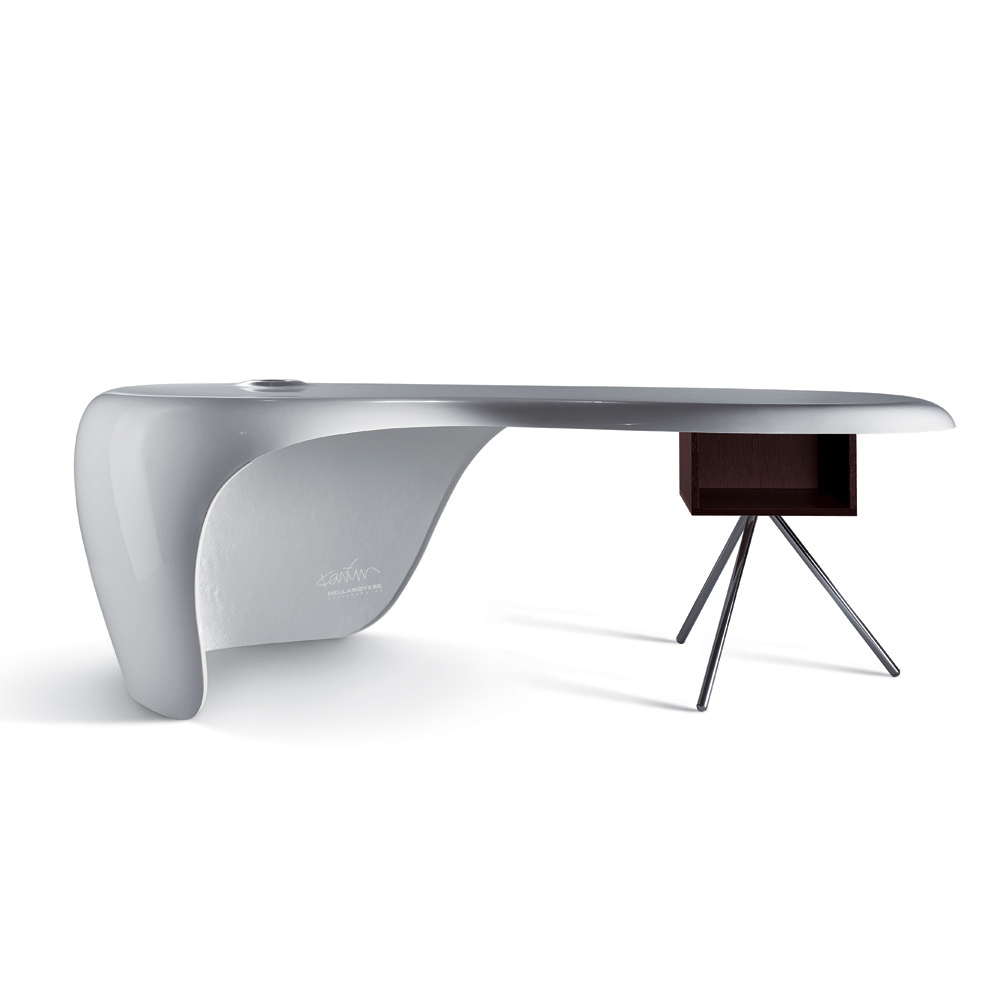 Secretária de design original e moderno, caracterizada por linhas simples e sinuosas.