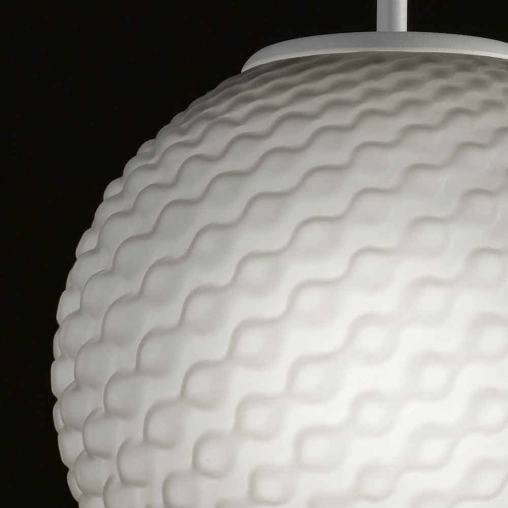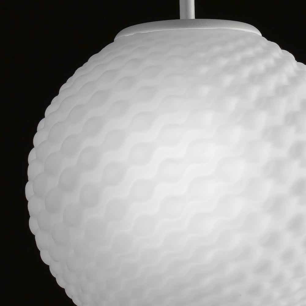 Rica coleção de lâmpadas de vidro soprado com uma manufatura especializada em favo de mel que adorna o próprio vidro. O tom de vidro pode ser cilíndrico em dois tamanhos e também em um esférico. Além disso, está disponível em três cores acetinadas: branco, âmbar e fumado.
