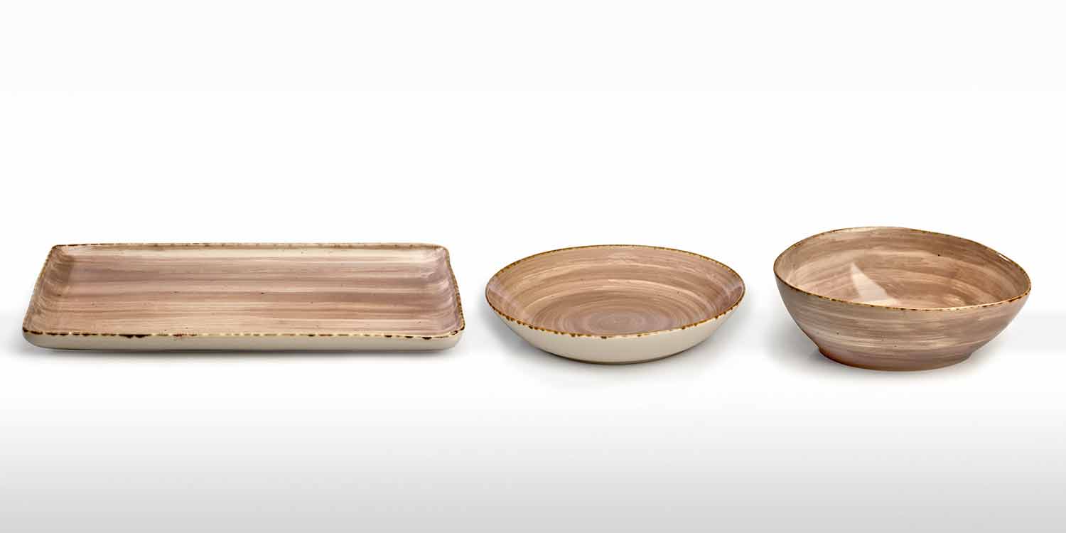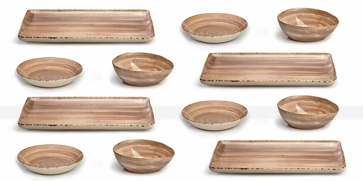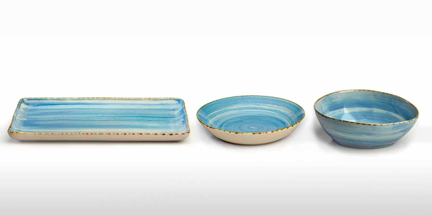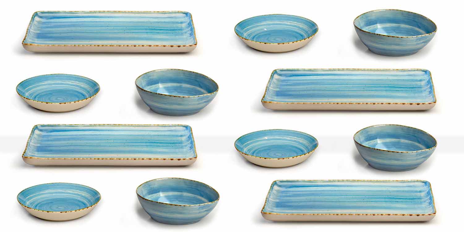 - Originalidade : as formas irregulares, as decorações com pinceladas imprecisas e com um efeito manchado, acabado e pintado à mão e com a borda antiquada, destacam o estilo rústico e terroso da coleção. Toda diferença entre uma peça e outra deve ser considerada como uma característica adicional de valor e personalidade, tornando cada peça única.