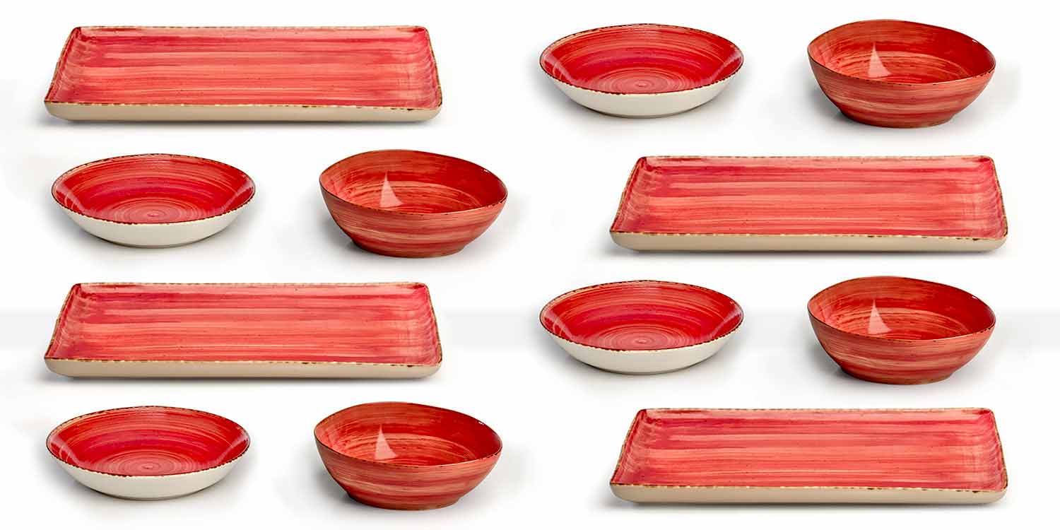 - pimenta vermelha : uma cor apimentada e fascinante capaz de melhorar as linhas suaves e persuasivas dos pratos. Um toque atraente e profundo de vermelho para obter toques individuais atraentes no serviço.