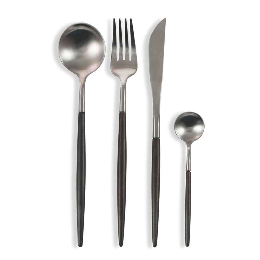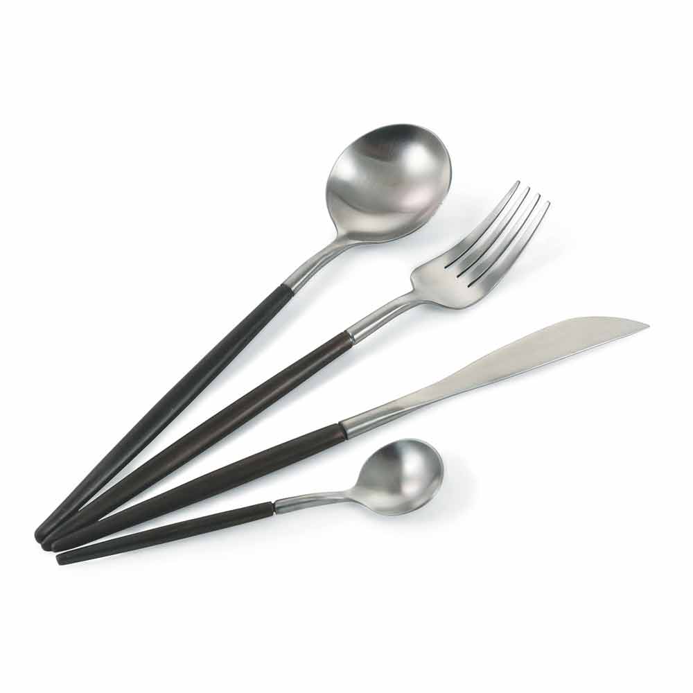 Conjunto de talheres de 24 peças em preto moderno e aço de design.