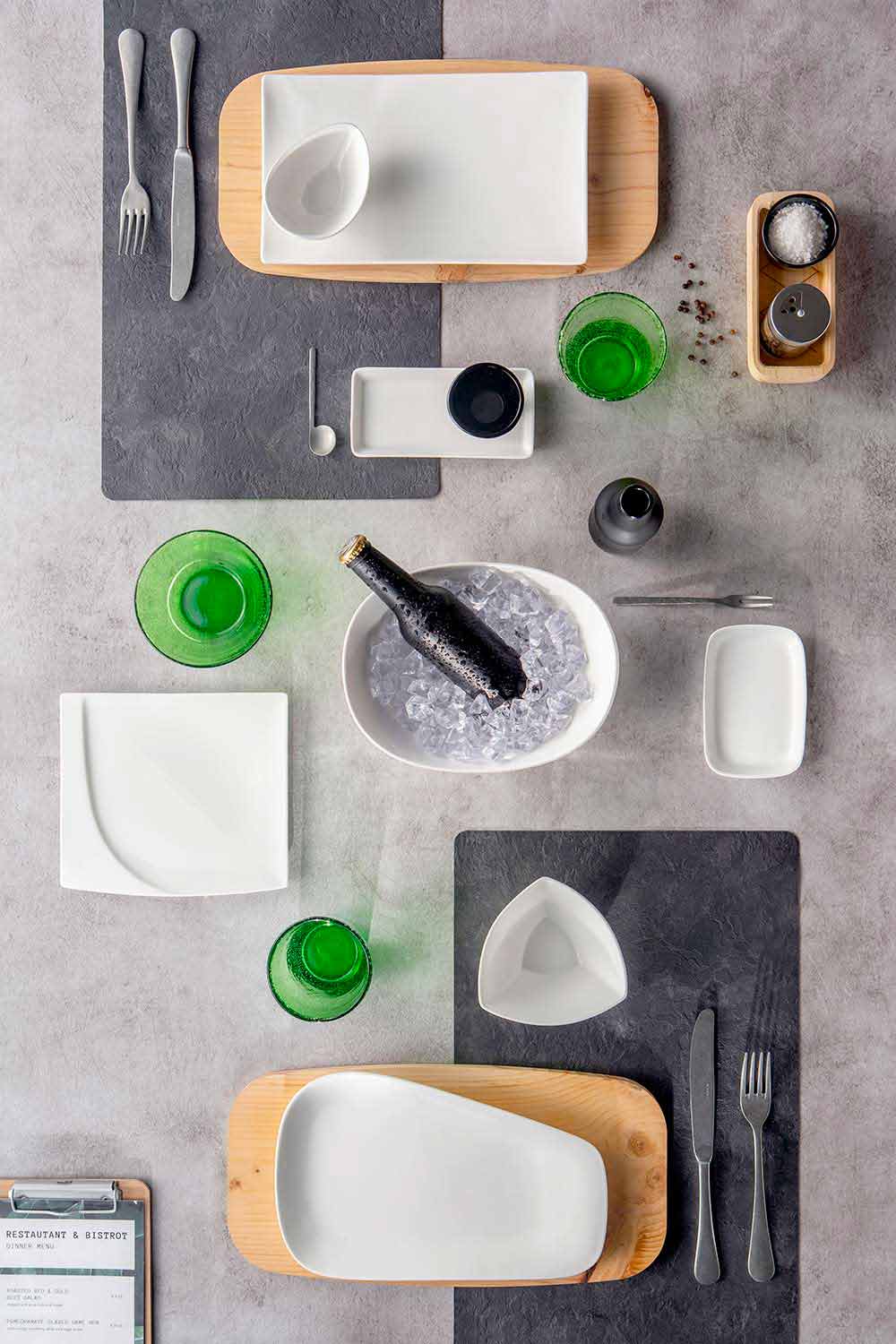 - Versatilidade : os produtos foram projetados especialmente para se adaptarem a qualquer tipo de alimento e ambiente, para que possam ser utilizados tanto em aperitivos, primeiros pratos, segundos pratos ou sobremesas, dando espaço à imaginação e criatividade. Uma coleção versátil para combinações ilimitadas.