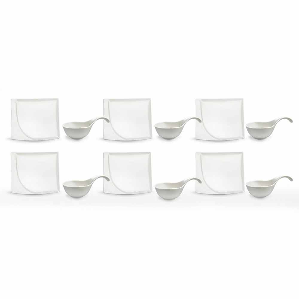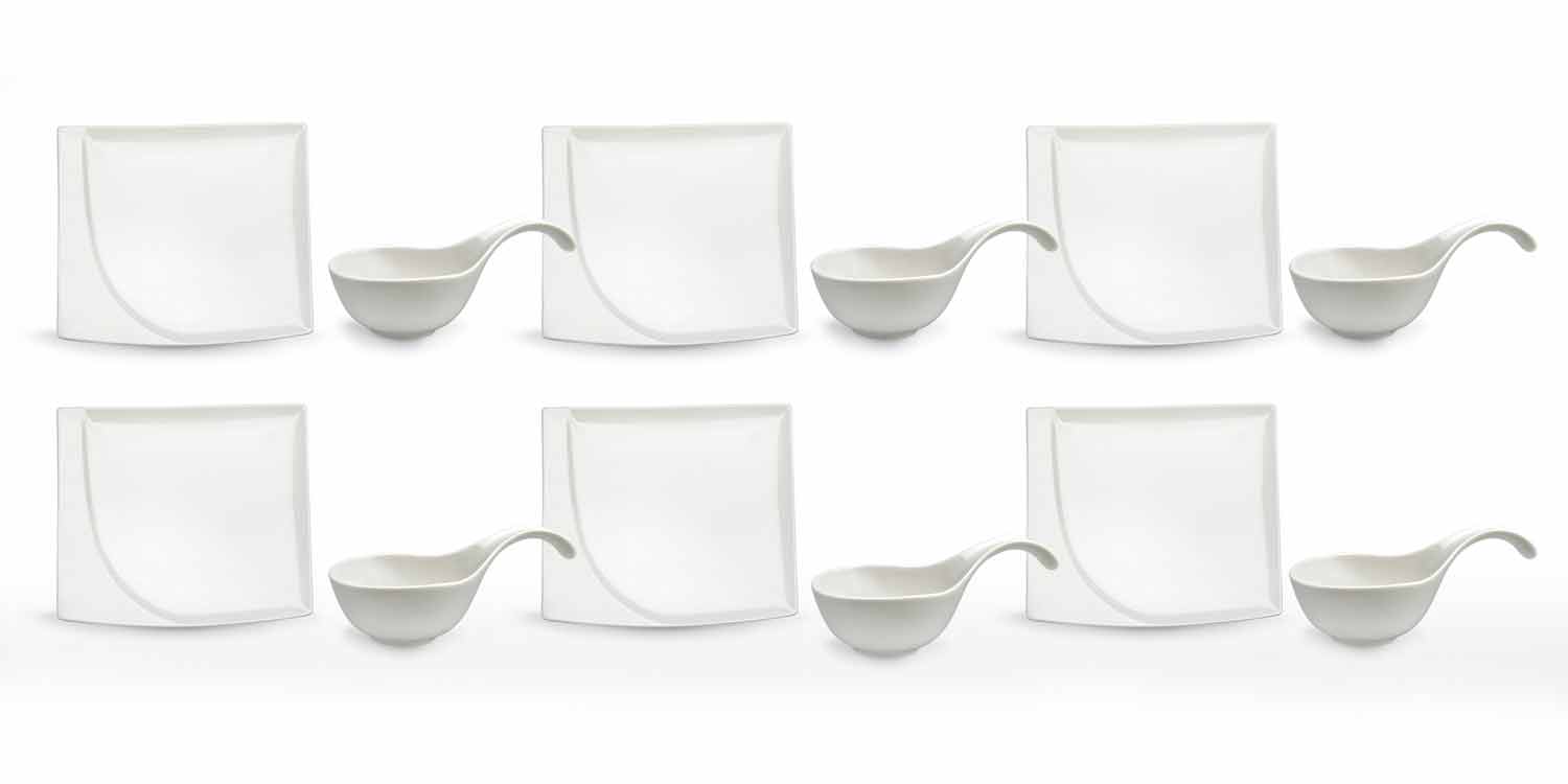 Conjunto de pratos de aperitivo em porcelana, 12 peças de design moderno, elegante e resistente.