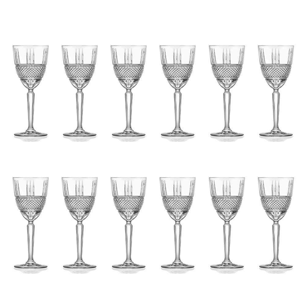 Conjunto de taças de vinho ou água em cristal ecológico lapidação de diamante, 12 peças fabricadas na Itália.