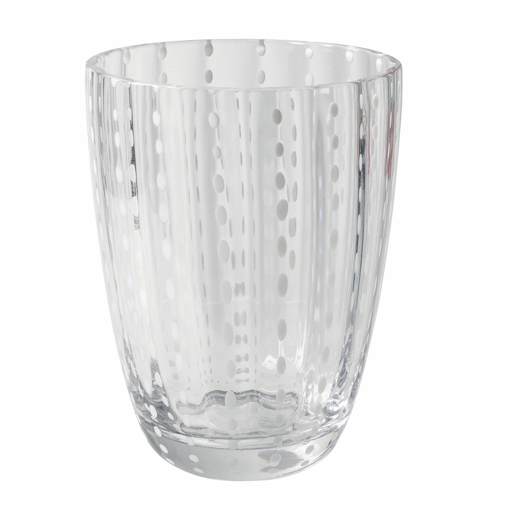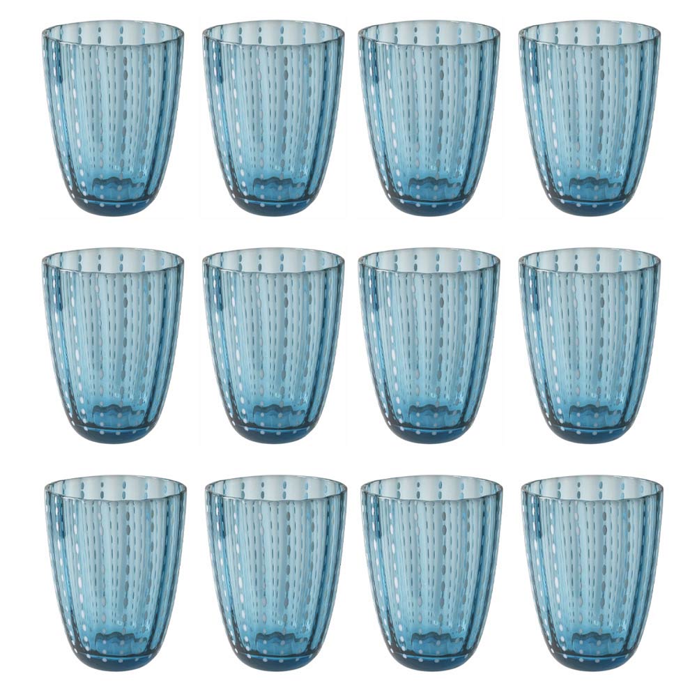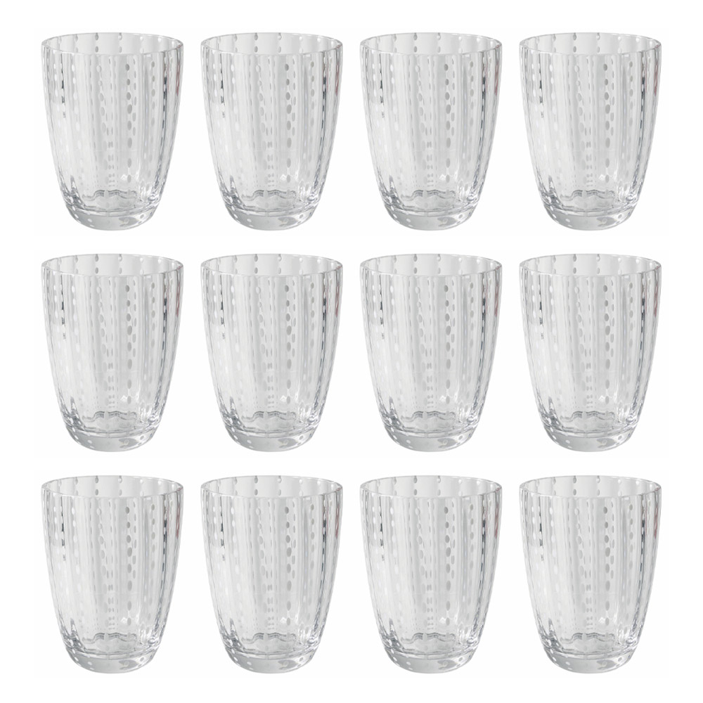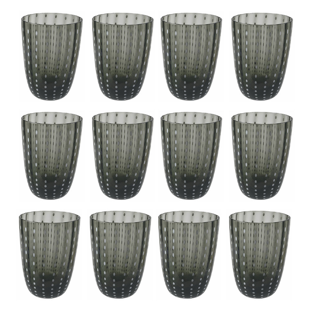 Copos para água em vidro colorido com decorações brancas 12 peças.