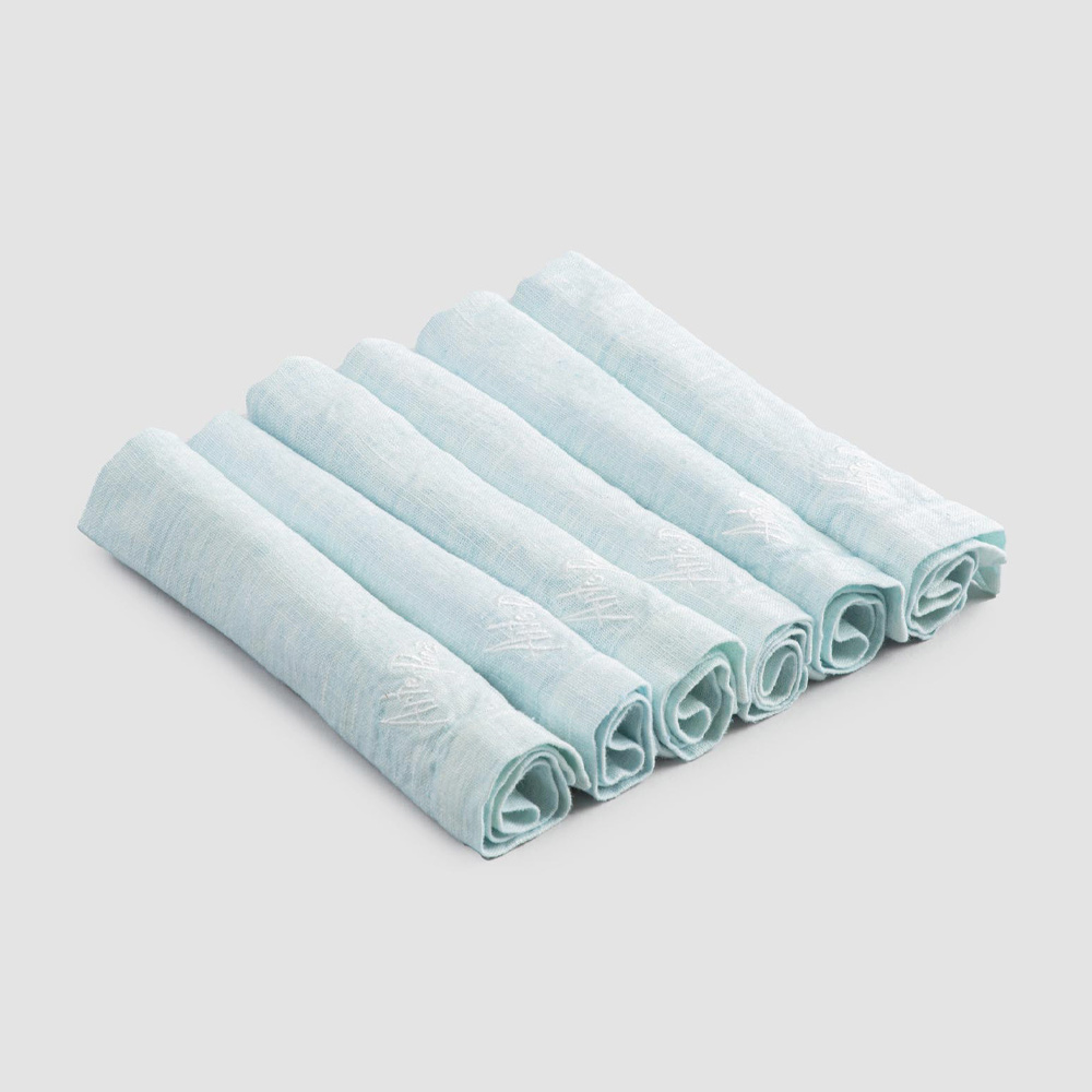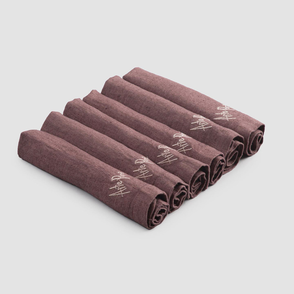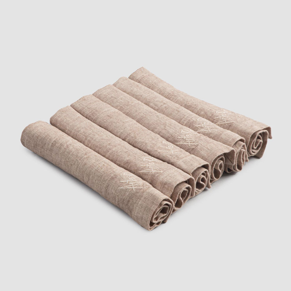 Conjunto de guardanapo de linho de cor pesada com rebordo dobrado, 6 peças luxuosas made in Italy.