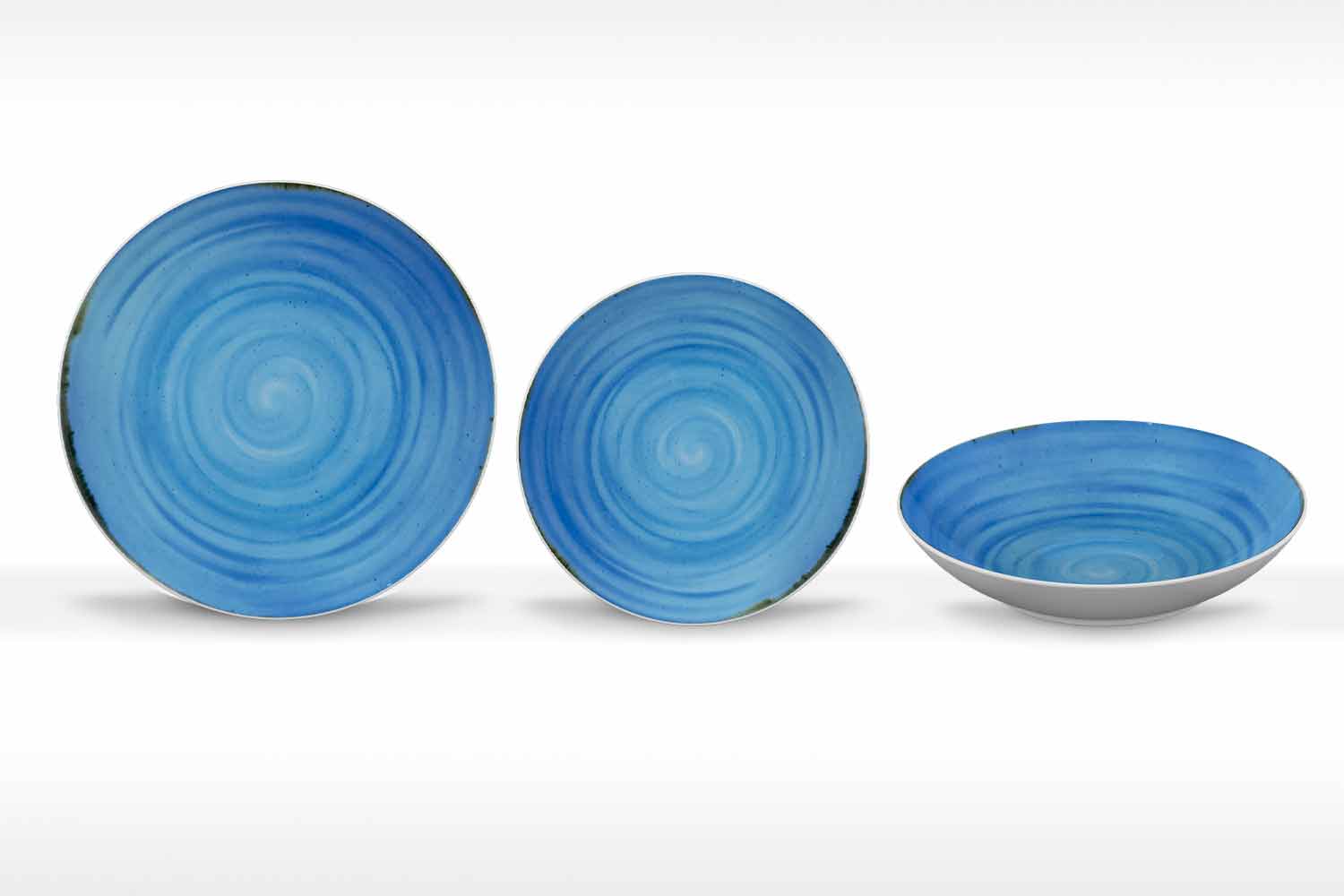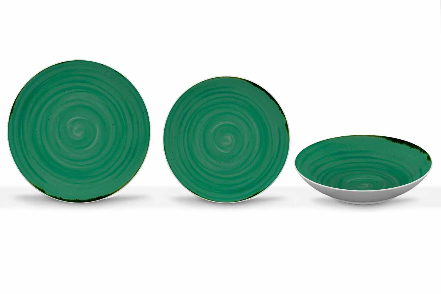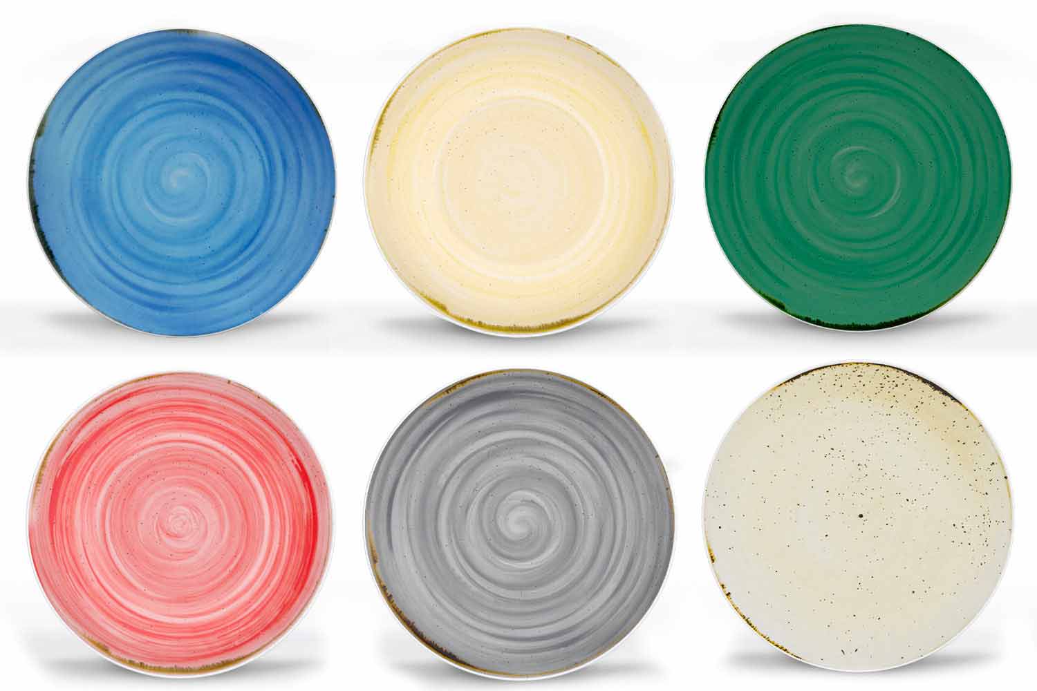 Prato de jantar de design rústico moderno com 18 peças em porcelana colorida.