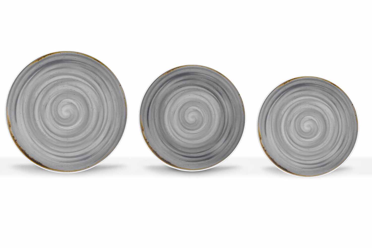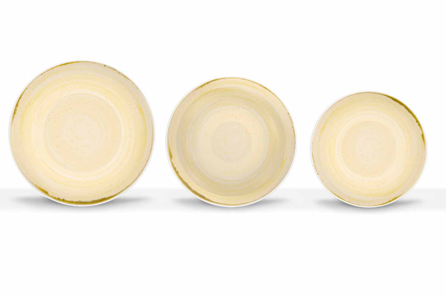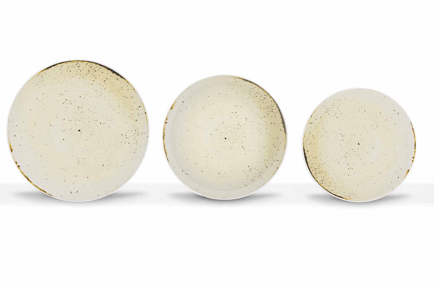 Prato de jantar de design rústico moderno com 18 peças em porcelana colorida.