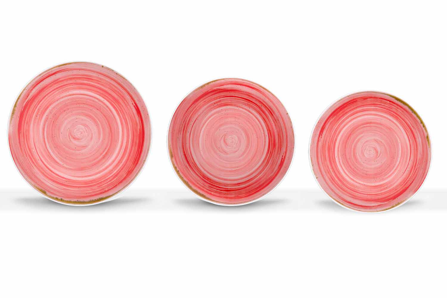 conjunto de pratos apresenta-se simples, elegante e requintado, feito de calcomania em cores diferentes, para um estilo rústico e versátil.