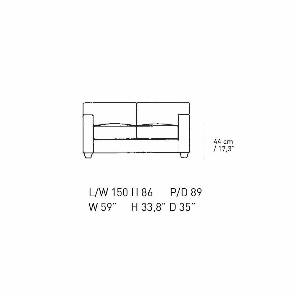Sofá 2 lugares com estrutura interna em madeira acolchoada com espuma de poliuretano e forro de fibra de poliéster, almofada do assento em penas de ganso esterilizadas,
