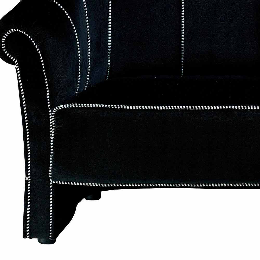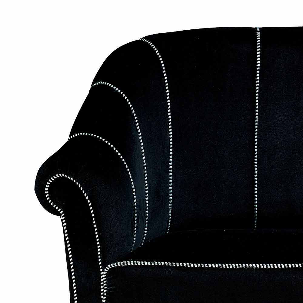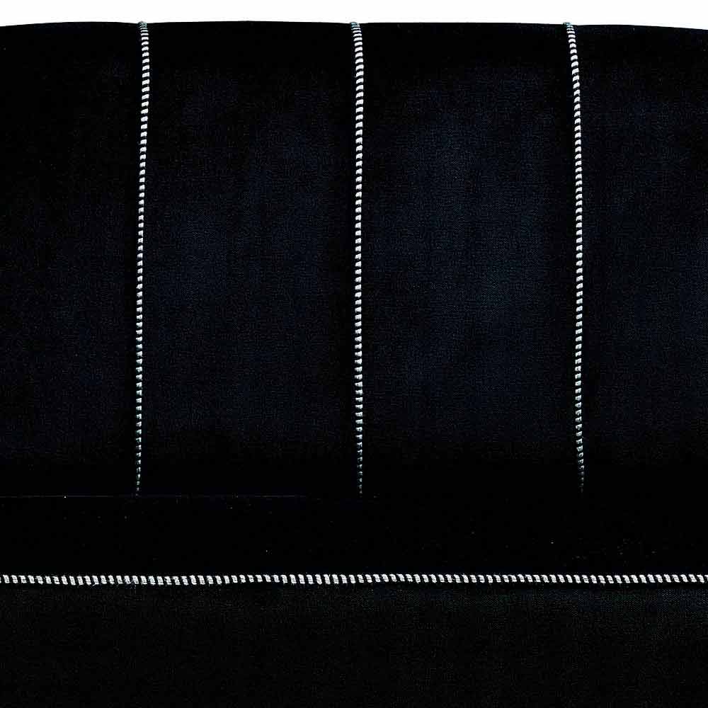 Sofá 2 lugares com estrutura interna em madeira forrado em espuma de poliuretano e forro em fibra de poliéster, forro externo em veludo preto com enfeites pretos e brancos ( não removível ). Fabricado através de uma produção 100% Made in Italy , este sofá tem uma forma particularmente simples e versátil que se adapta facilmente a qualquer sala de estar moderna graças a um design sóbrio e formas essenciais . Para enriquecer a estética estão as costuras contrastantes que realçam as características básicas do sofá, dando uma sensação de requinte e inovação para um resultado de vanguarda. Ideal para quem gosta de um estilo de decoração elegante, esta solução de mobiliário conta ainda com um forro de veludo, material que maximiza o seu conforto ao toque. Os materiais escolhidos e utilizados para a realização deste complemento permitem também obter um assento particularmente acolhedor , portanto ideal para passar momentos maravilhosos dedicados ao relaxamento na sua sala de estar.