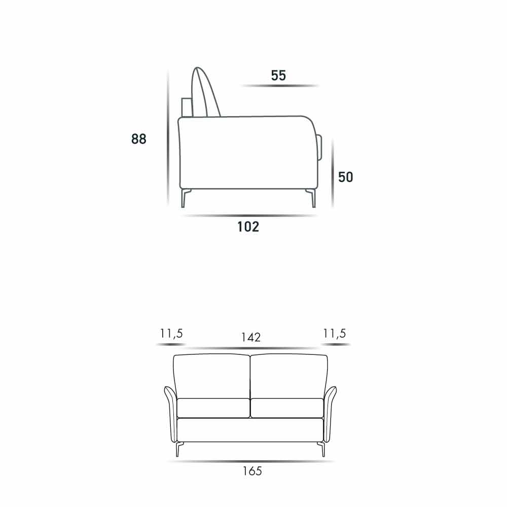 Sofá maxi de 2 lugares L.165cm em imitação de pele / tecido made in Italy Primula, design moderno