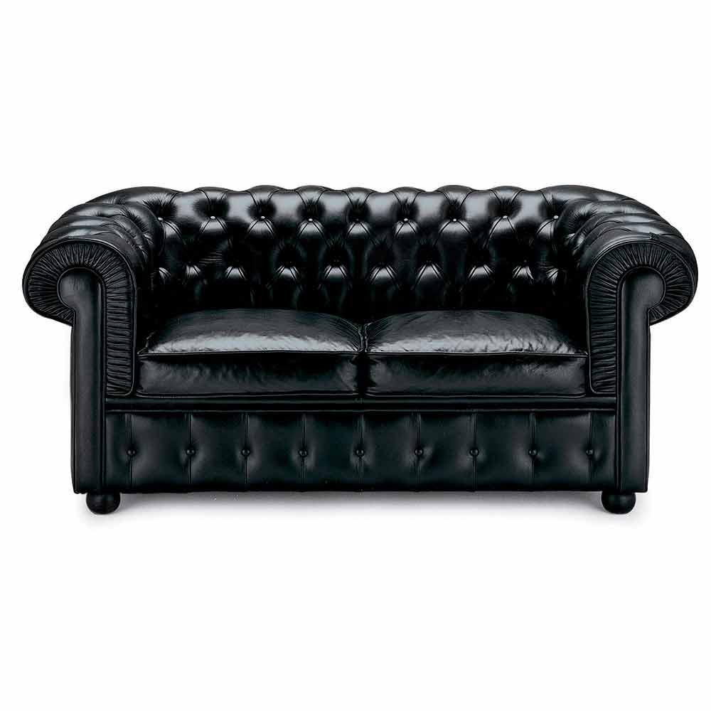 Sofá clássico de 2 lugares em pele com pés em madeira Fabricado na Itália.