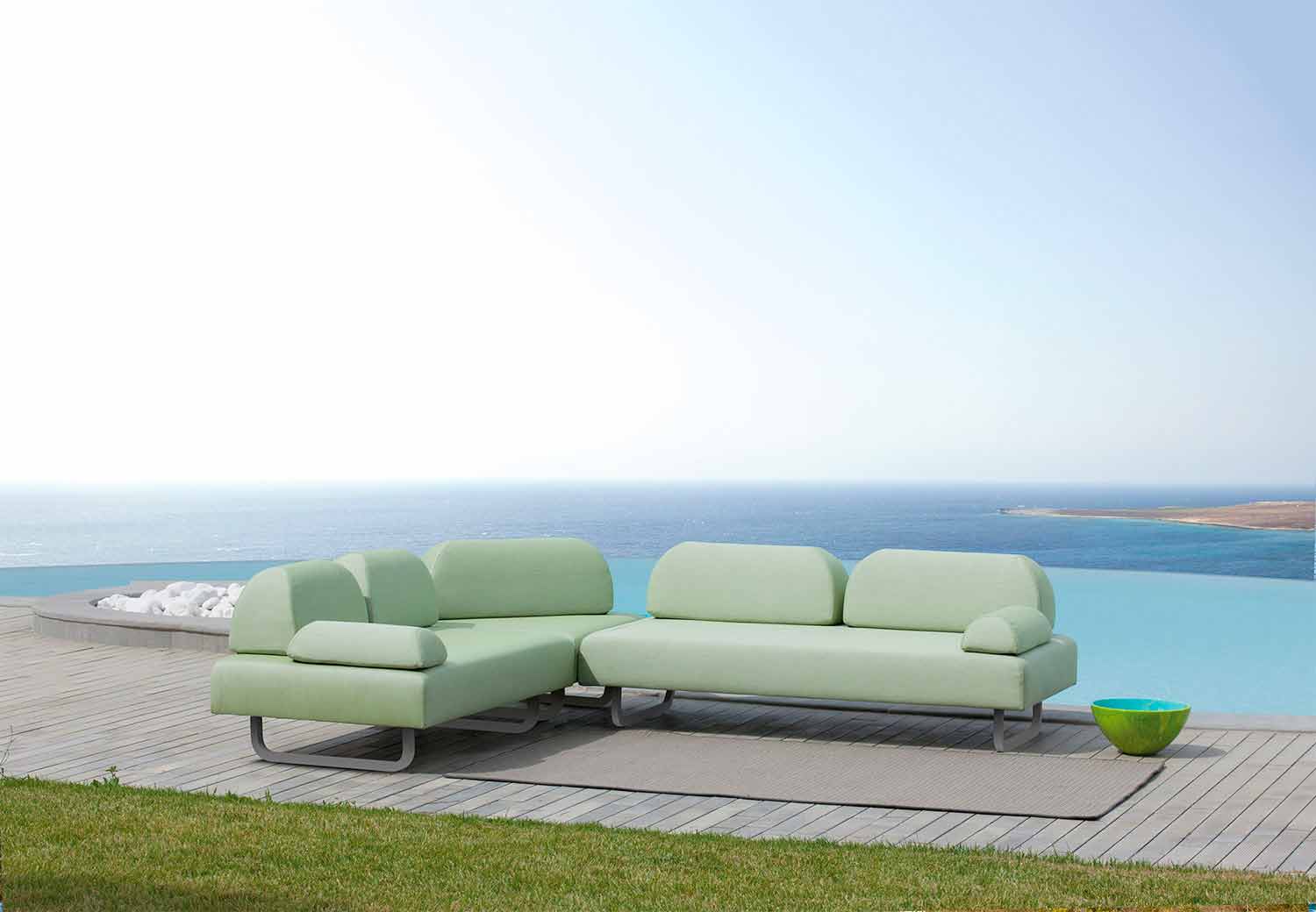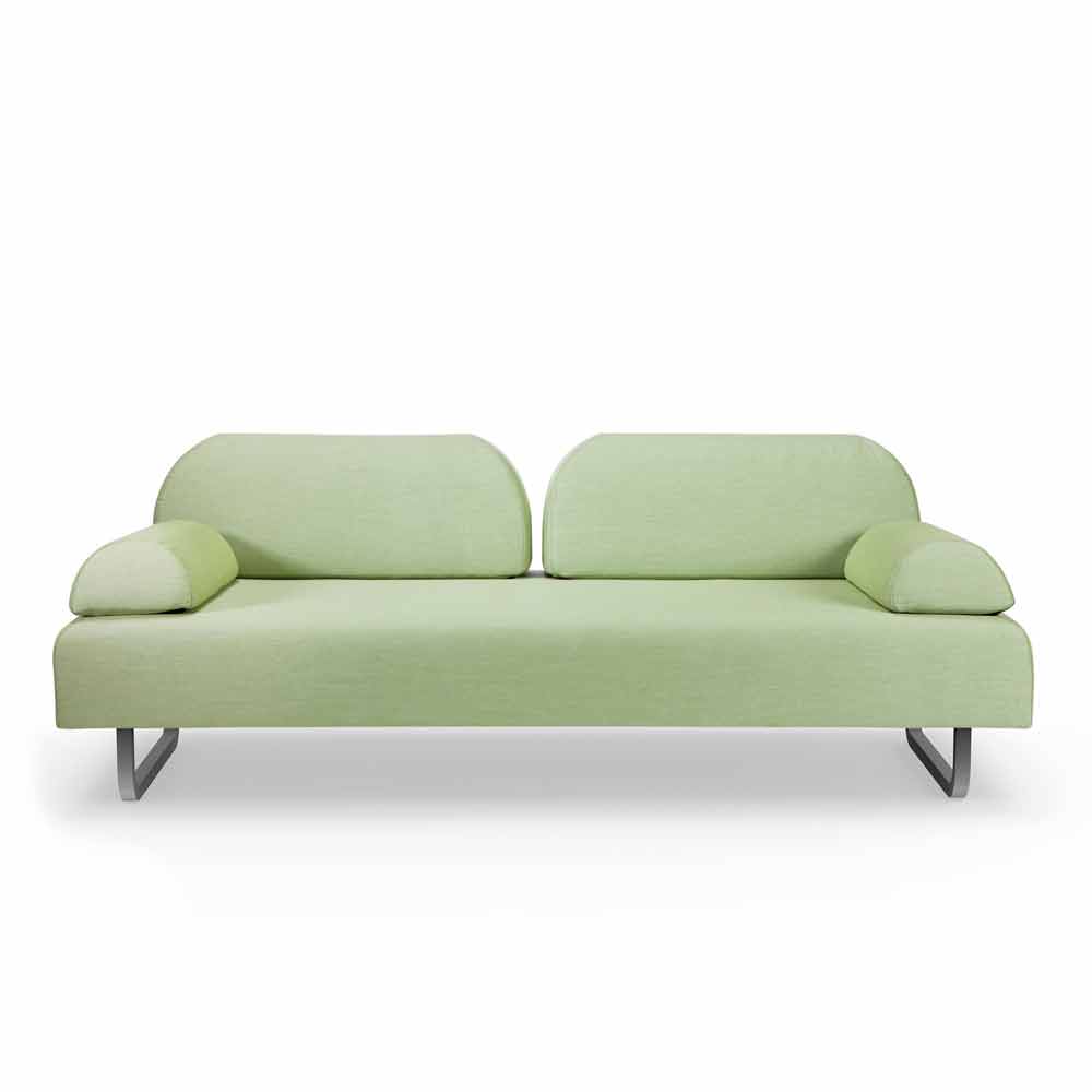 Itália com matérias-primas selecionadas que garantem um produto final de alta qualidade. Caracterizado por um design que mistura o futurista e o retrô, criando um produto único e inovador, o sofá inclui duas almofadas de encosto que podem ser posicionadas conforme desejado, tornando o produto versátil e modular.