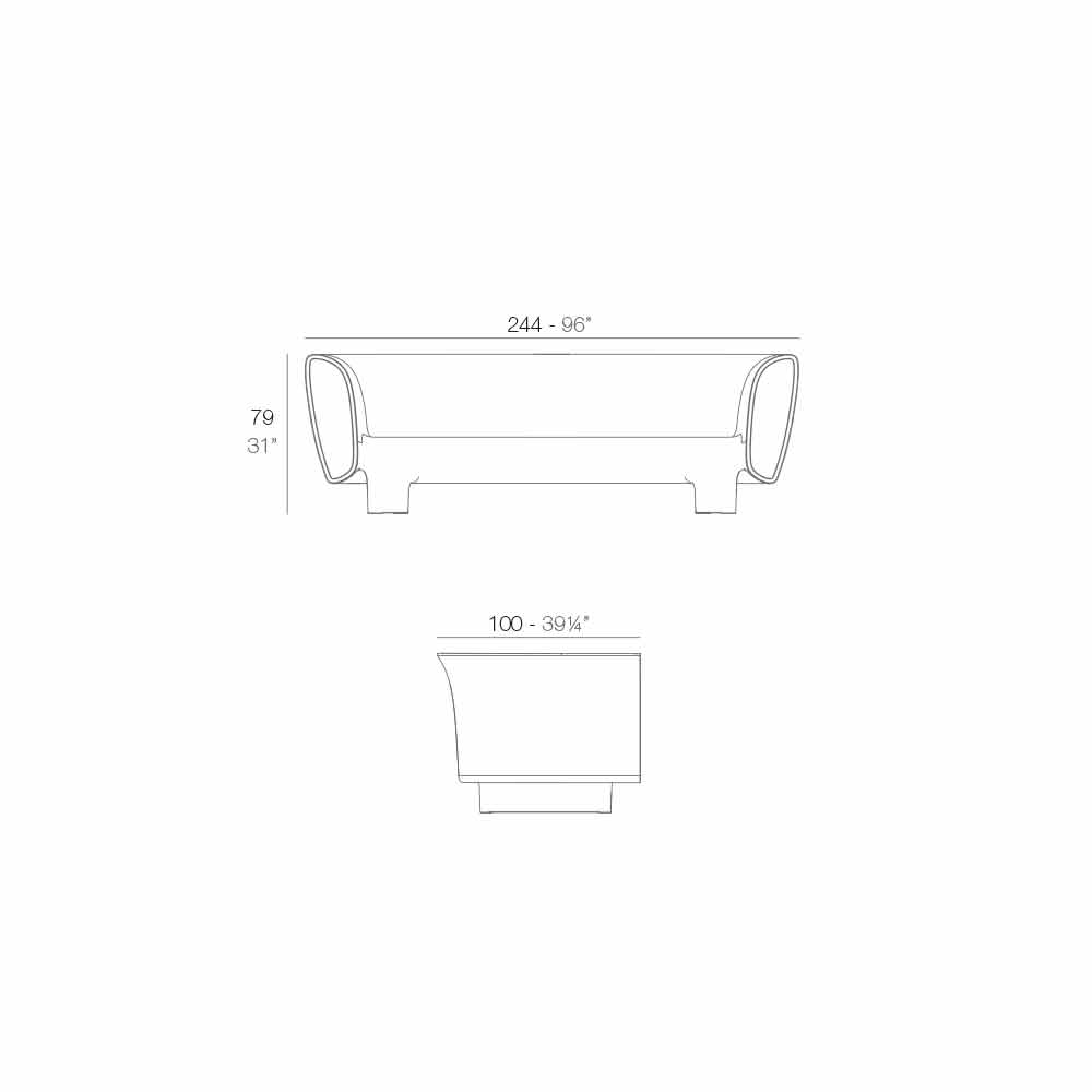 Sofá feito de resina de polietileno por um molde rotativo de parede dupla; lacado preto.