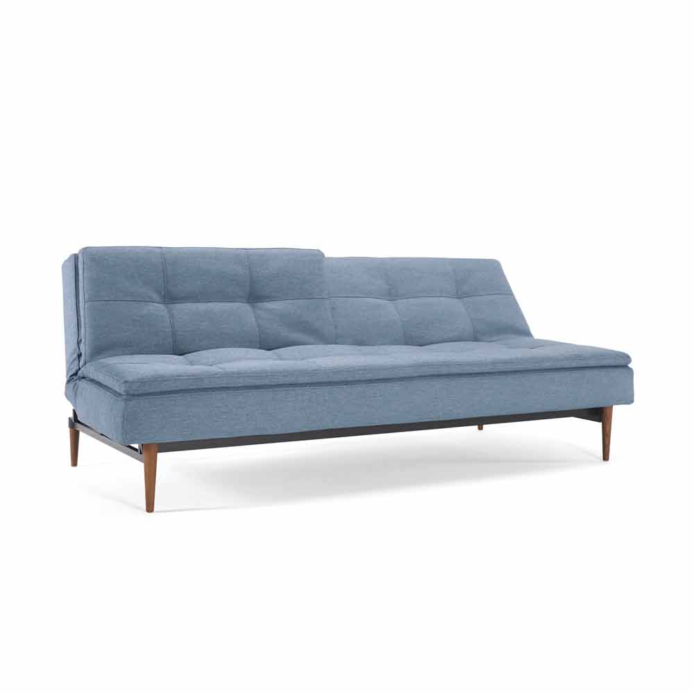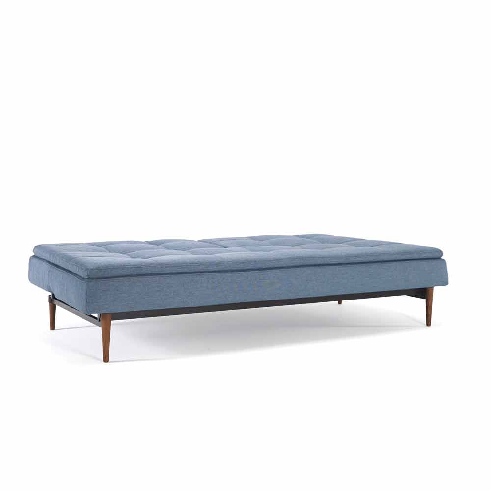 Sofá cama azul com design escandinavo regulável em 3 posições Dublexo by Innovation, pés em madeira escura, estrutura em preto mate.