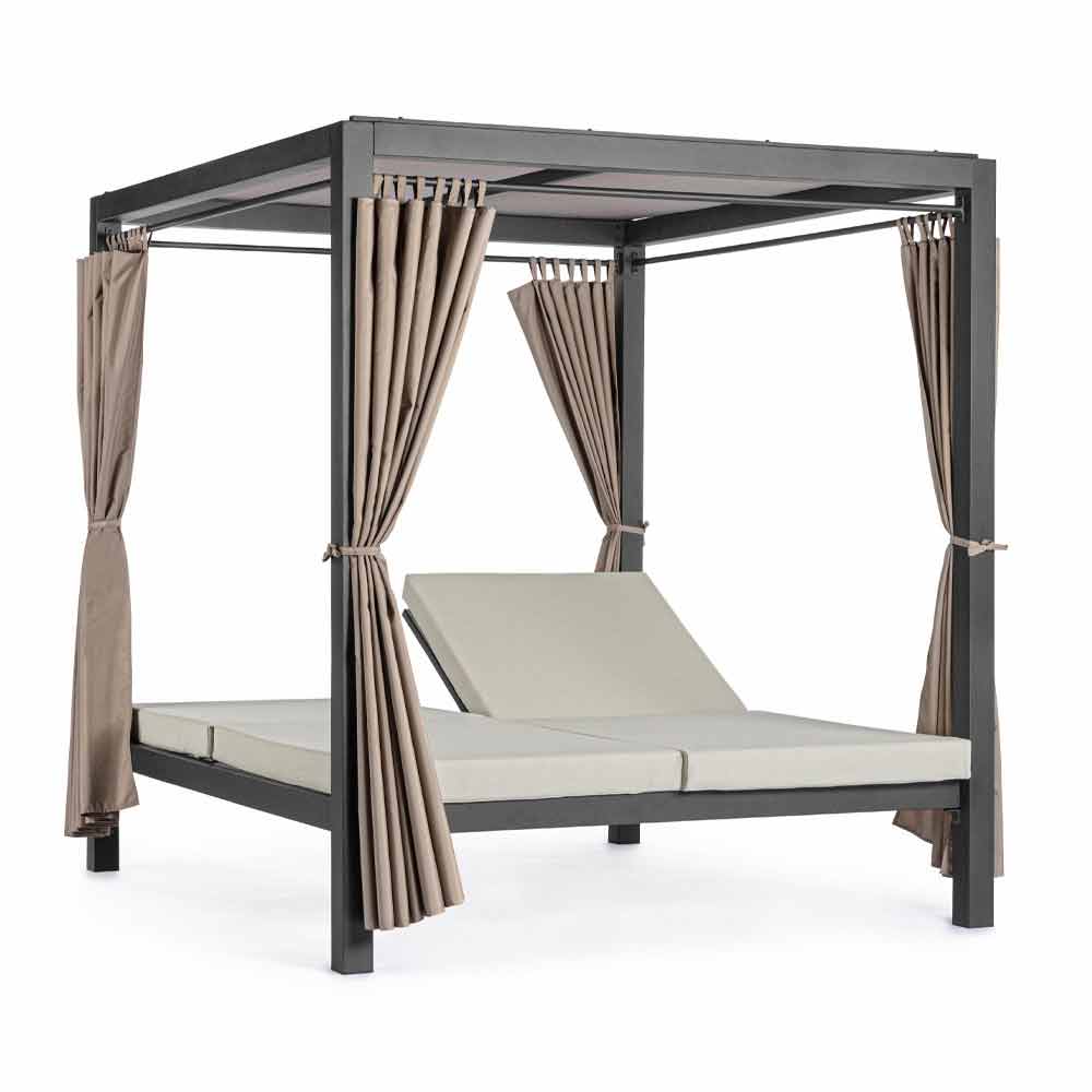 textilene 1x1 , enchimento de espuma de secagem rápida para utilização no exterior. Encostos reclináveis em 4 posições e cortinas laterais em