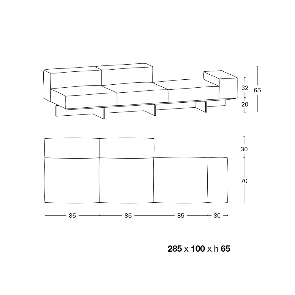 Dimensões:- Comprimento 285cm x Profundidade 100cm x Altura 65cm
