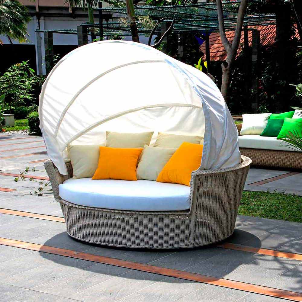 Sofá de jardim feito à mão com dossel retrátil, cor ecru.