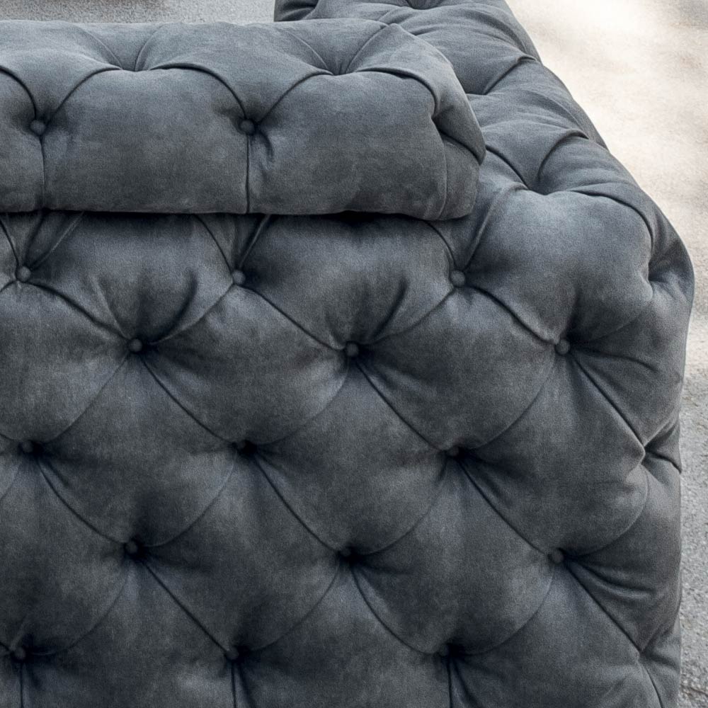 espuma de poliuretano de alta densidade , revestida com veludo e resinada. O estofamento do encosto é feito de