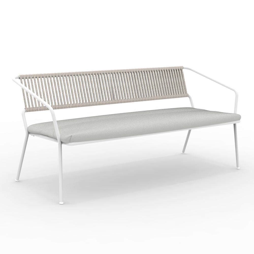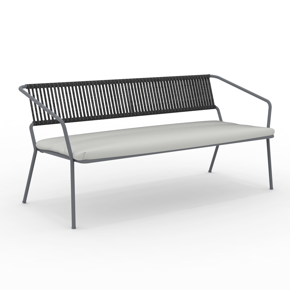 Sofá de jardim de 2 lugares com estrutura de ferro galvanizado com revestimento em pó e assento de corda e tecido Fabricado na Itália