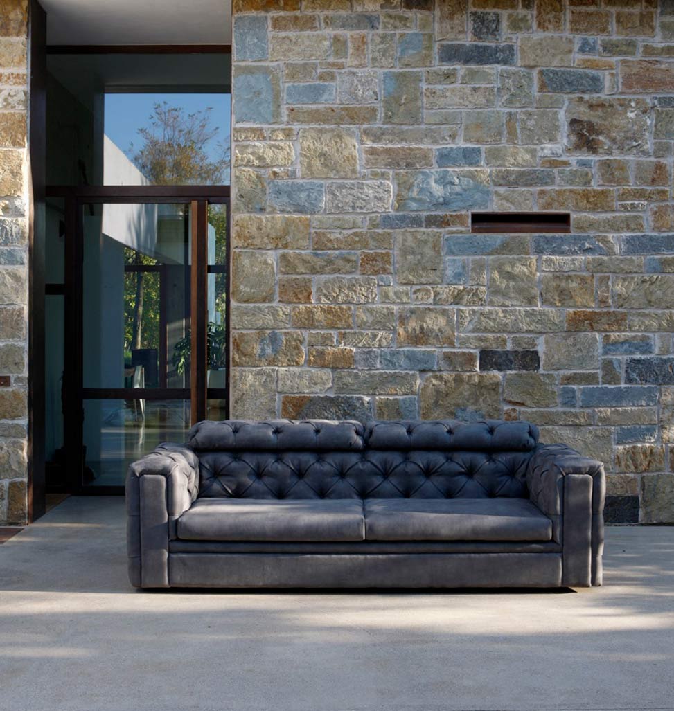 espuma de poliuretano de alta densidade , revestida com veludo e resinada. A almofada do encosto é