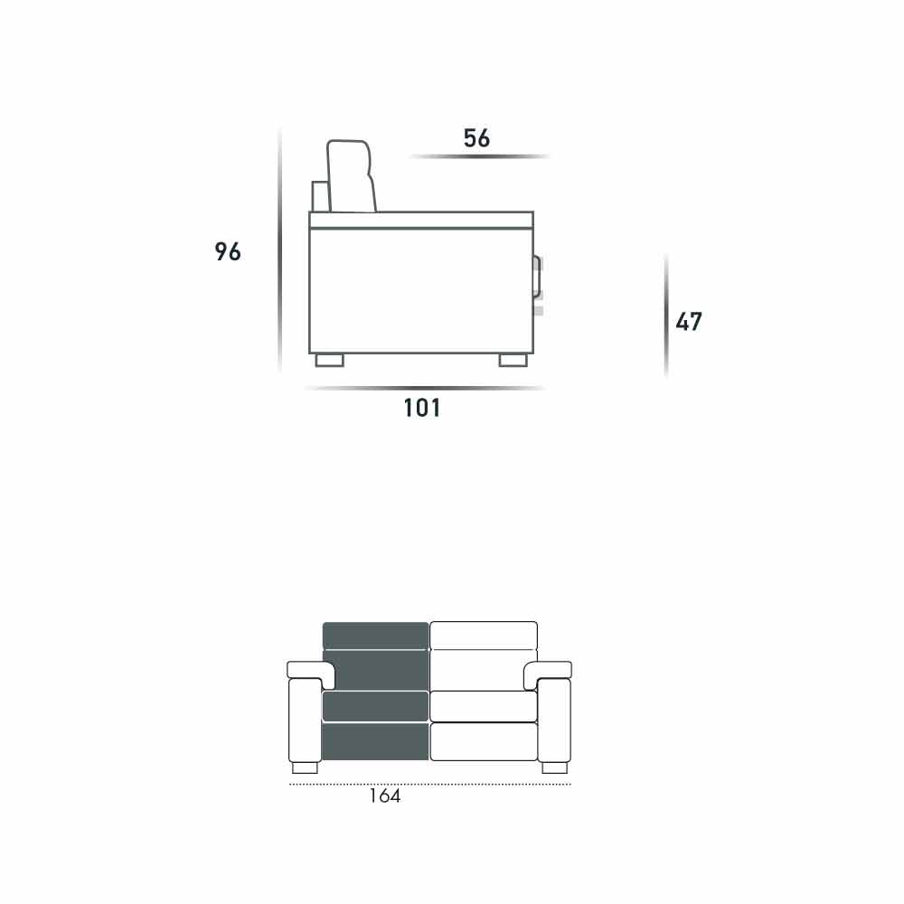 Sofá motorizado de 2 lugares com 1 assento elétrico Lilia, feito na Itália
