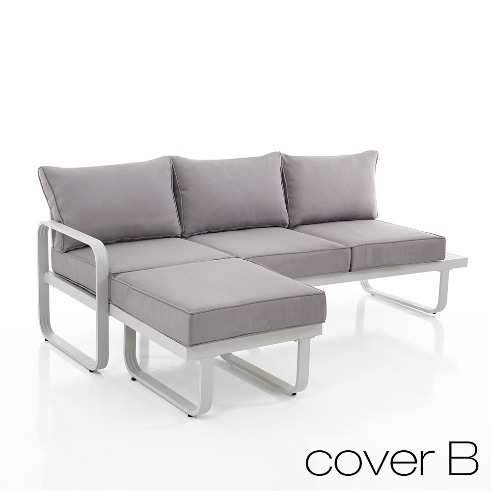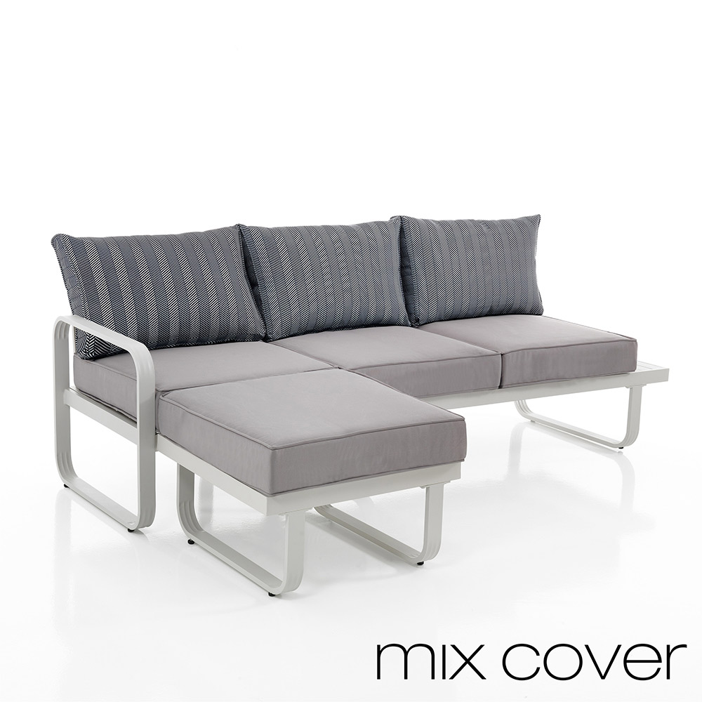Este sofá com pufe para jardim representa o auge da elegância funcional . As suas linhas modernas, apoiadas numa estrutura de alumínio, exalam um charme contemporâneo e requintado . A modularidade do pufe combina perfeitamente com o sofá, oferecendo a possibilidade de ampliar o espaço de assento ou utilizá-lo como apoio para os pés, para uma versatilidade incomparável . Materiais de alta qualidade garantem durabilidade e fácil manutenção , essenciais para uso externo. Este conjunto é mais do que apenas móveis; é uma afirmação de conforto e estilo que convida a momentos de convívio, relaxamento após um longo dia ou para entreter os hóspedes num ambiente de hospitalidade e luxo discreto .