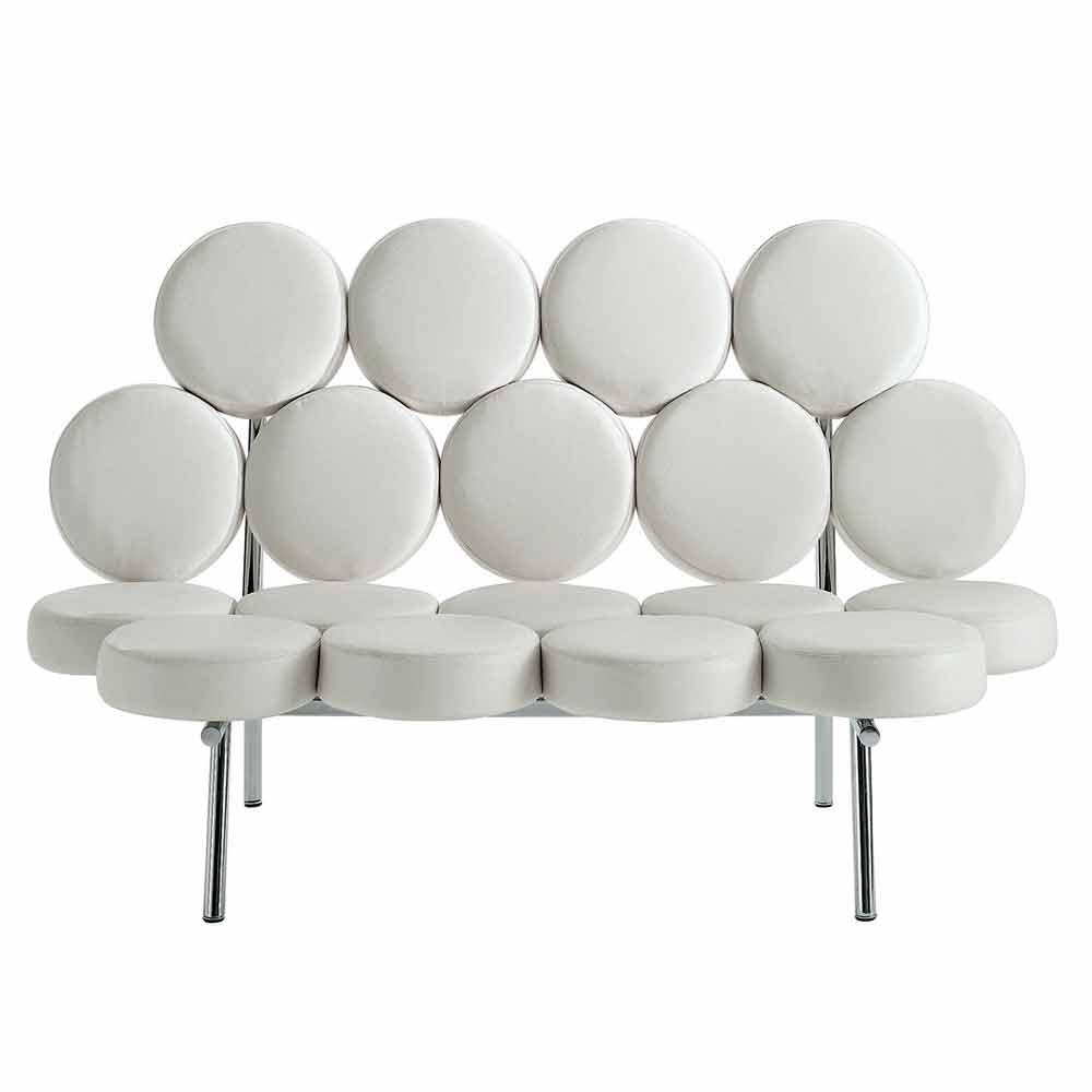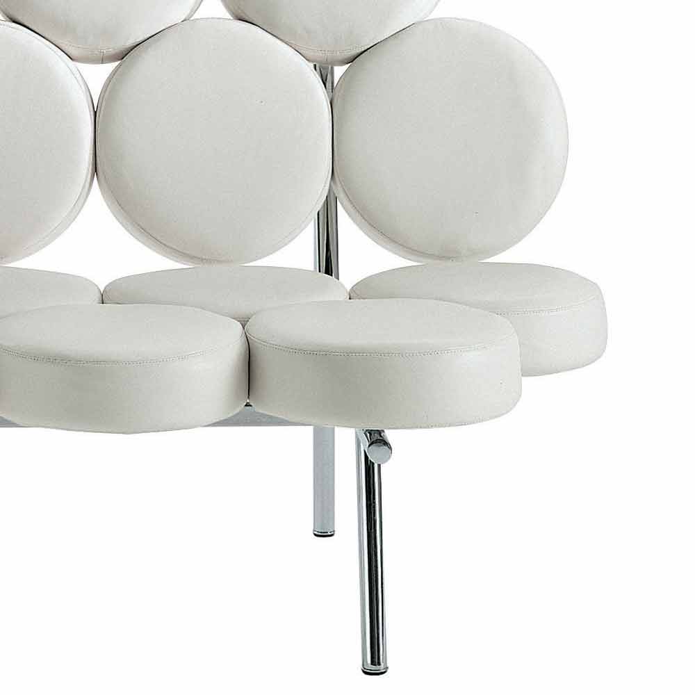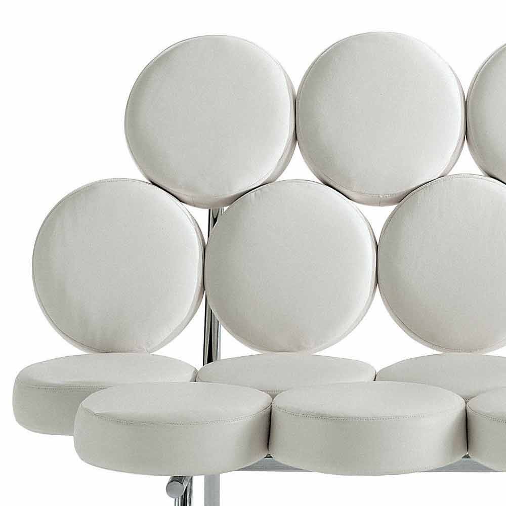 Sofá moderno em aço cromado com estofamento em couro Made in Italy.