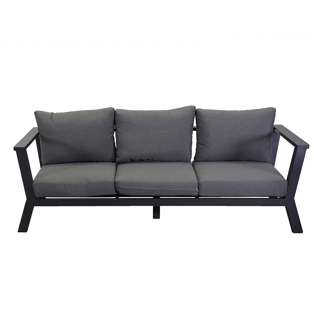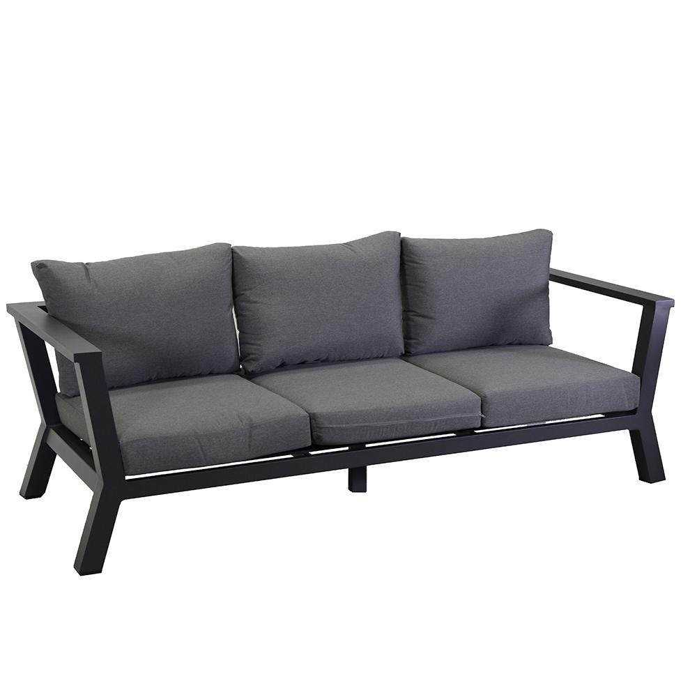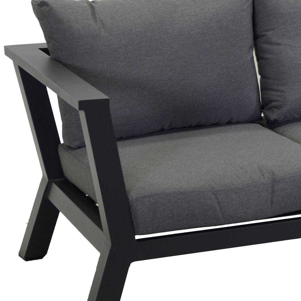 Este sofá com estrutura de alumínio revestido a pó antracite é o epítome da elegância moderna e funcionalidade . Perfeito para qualquer espaço ao ar livre, oferece um assento espaçoso e confortável, enriquecido por almofadas de tecido cinza que garantem o máximo conforto. Essas almofadas, além de serem esteticamente agradáveis, são repelentes à água e removíveis , garantindo fácil manutenção e uma longa vida útil.