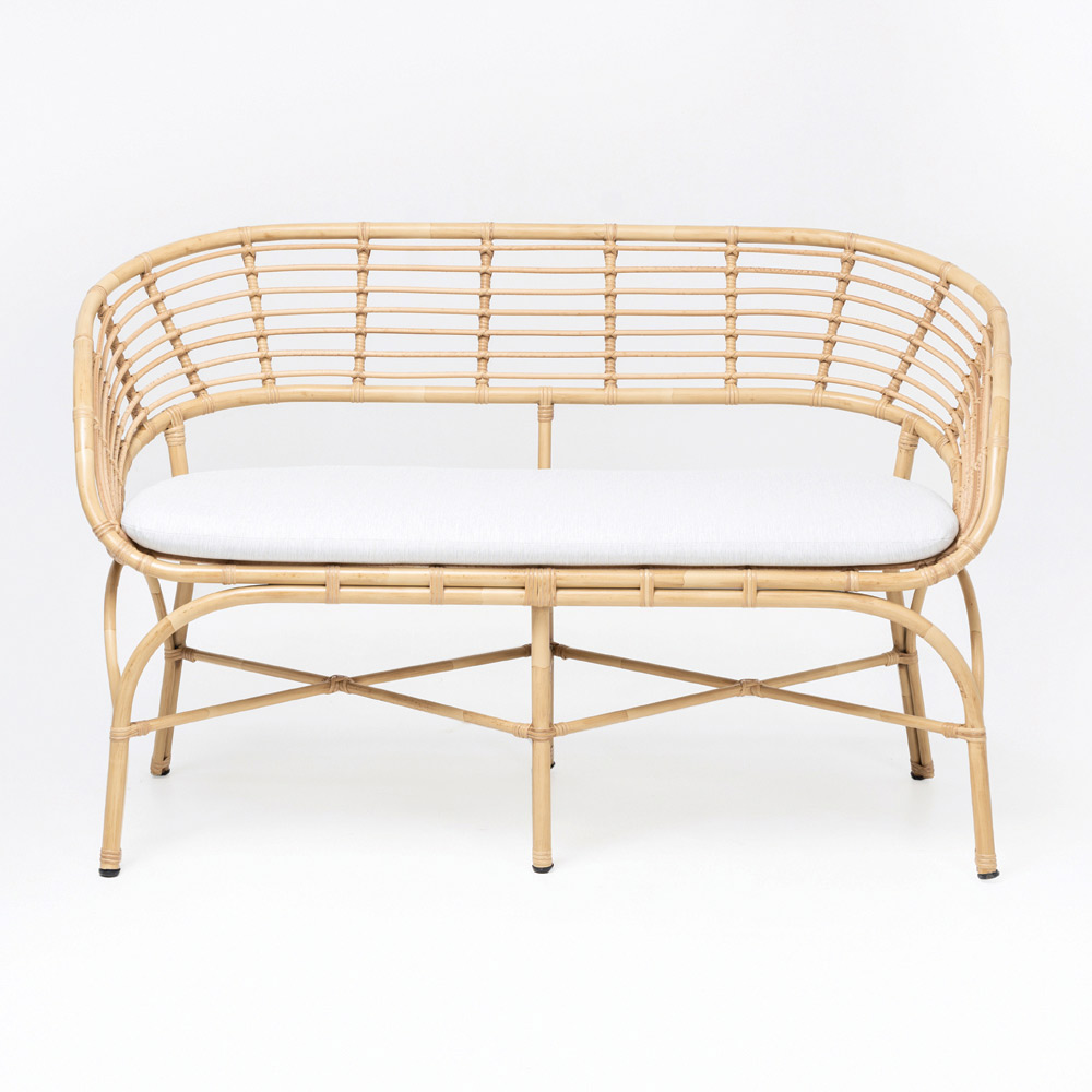 Este sofá de jardim em polyrattan é um exemplo de design leve e elegante que o convida a momentos de puro relaxamento. A sua estrutura, com as suas linhas curvas e a cor natural do polyrattan, evoca uma atmosfera de serenidade e simplicidade, perfeita para criar um canto do paraíso no jardim ou no terraço.