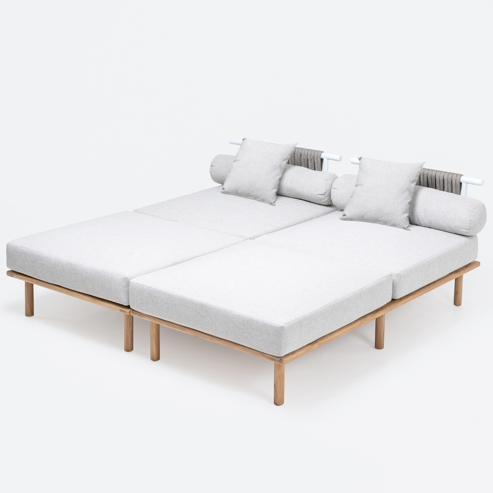 As linhas simples e limpas do design são interrompidas apenas pela textura convidativa das almofadas, que prometem o máximo conforto para momentos de puro relaxamento. As almofadas podem ser removidas para criar mesas elegantes, perfeitas para manter ao seu alcance a sua bebida favorita ou o livro do momento. Se você está organizando uma reunião de convívio ou simplesmente quer desfrutar do prazer da solidão, este conjunto é capaz de se transformar para atender a todas as suas necessidades.