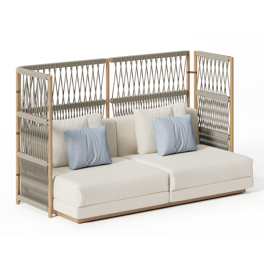Sofás exteriores centrais e estrutura em forma de C em madeira iroko Made in Italy