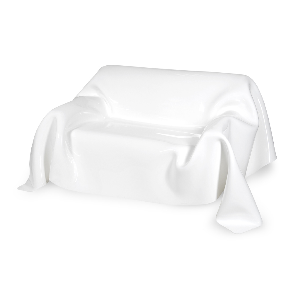 Sofá de design moderno em plexiglass branco ou multicolor, fabricado na Itália.