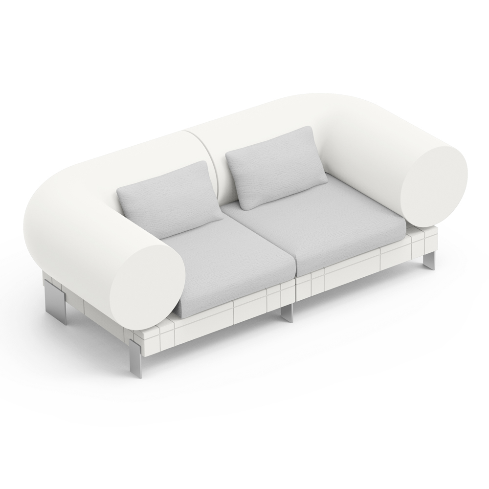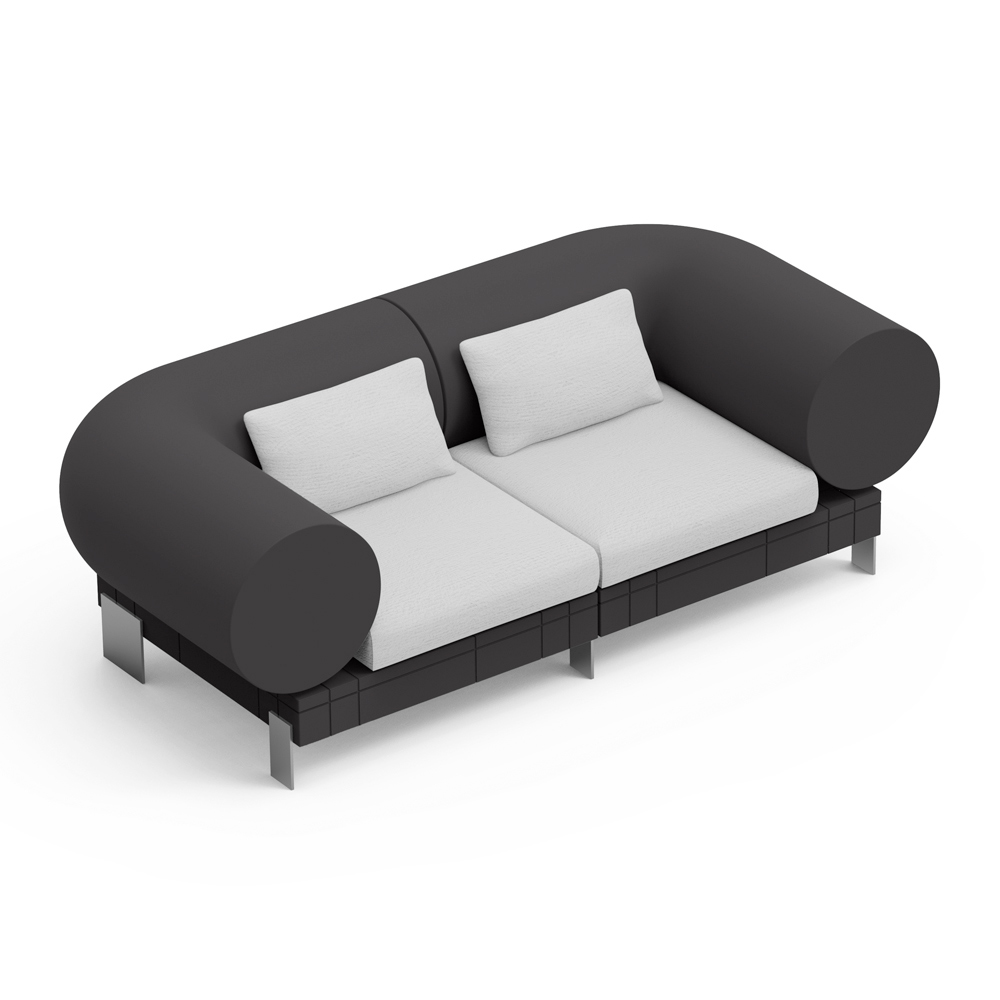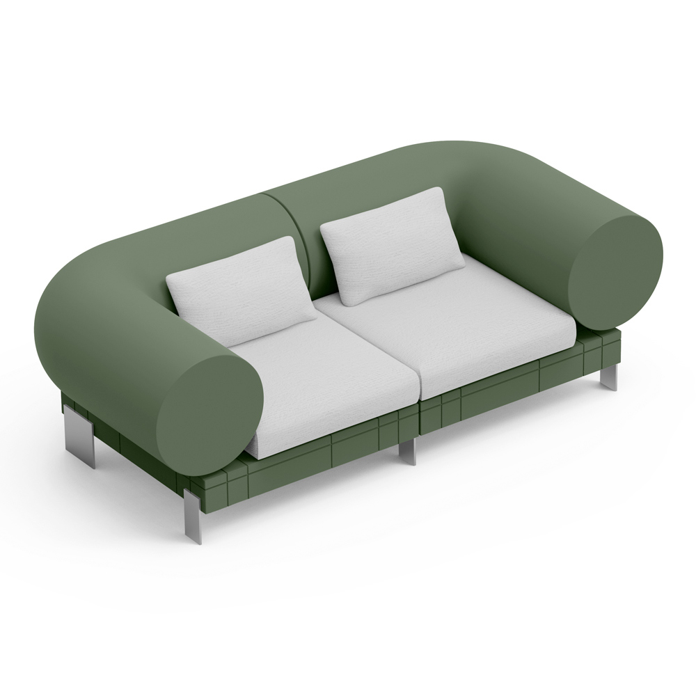 Este sofá contemporâneo combina conforto e design moderno em uma peça de mobiliário que chama a atenção. Caracterizado por linhas limpas e um formato inovador com cilindros laterais, o sofá oferece um toque de estilo único e funcional . A sua paleta de cores introduz um elemento de brilho e frescura em cada espaço habitacional.