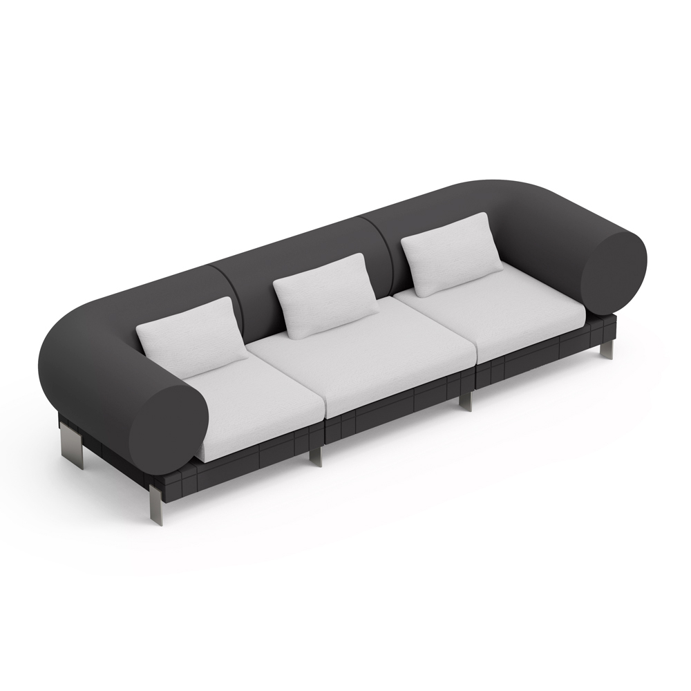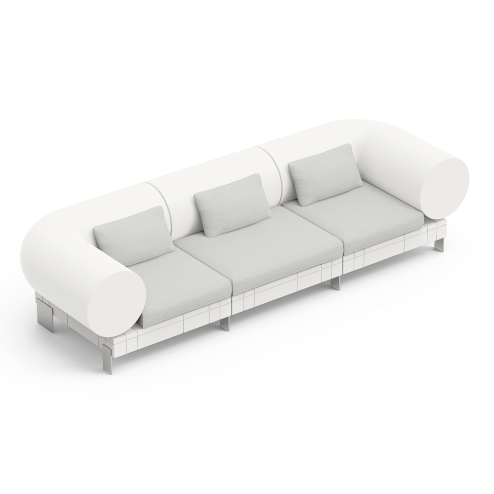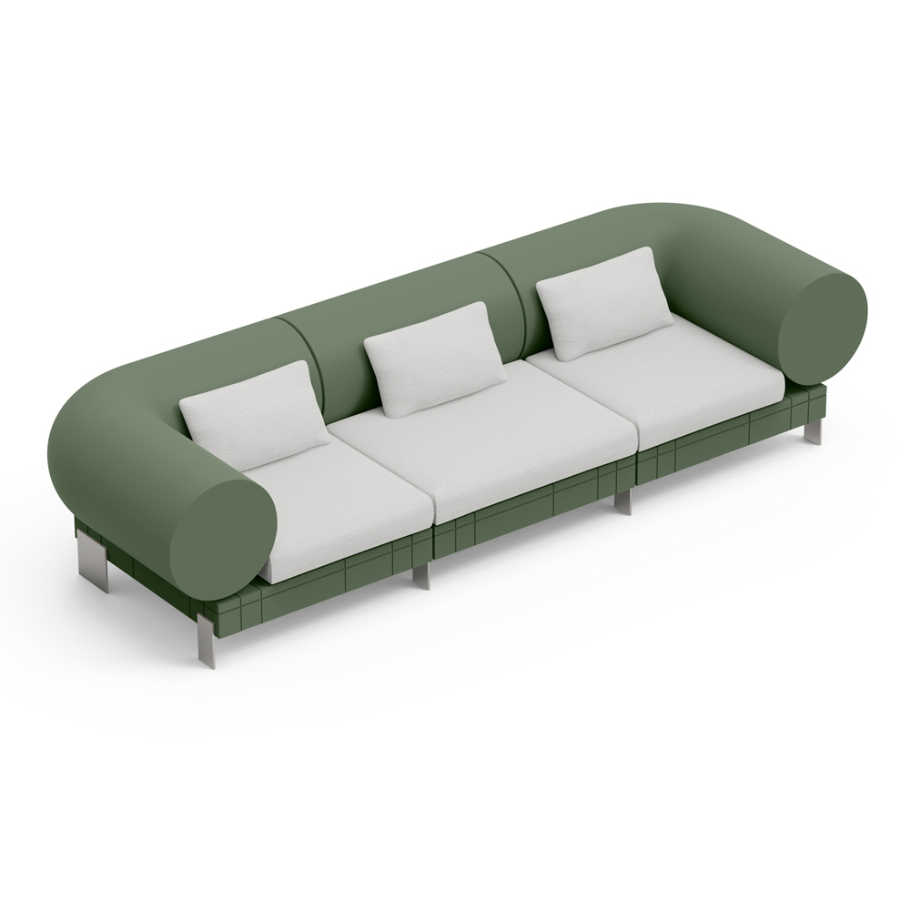O sofá é apoiado por uma base metálica fina que não só garante estabilidade, mas acrescenta um toque elegante e minimalista a todo o design. Materiais de alta qualidade garantem durabilidade e conforto , tornando-o perfeito para o relaxamento do dia a dia.