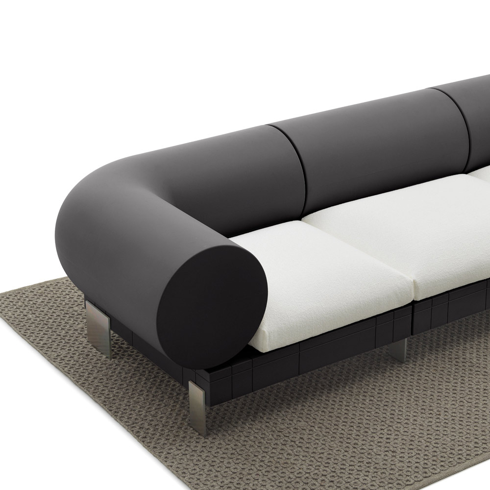 Este sofá contemporâneo combina conforto e design moderno em uma peça de mobiliário que chama a atenção. Caracterizado por linhas limpas e um formato inovador com cilindros laterais, o sofá oferece um toque de estilo único e funcional . A sua paleta de cores introduz um elemento de brilho e frescura em cada espaço habitacional.