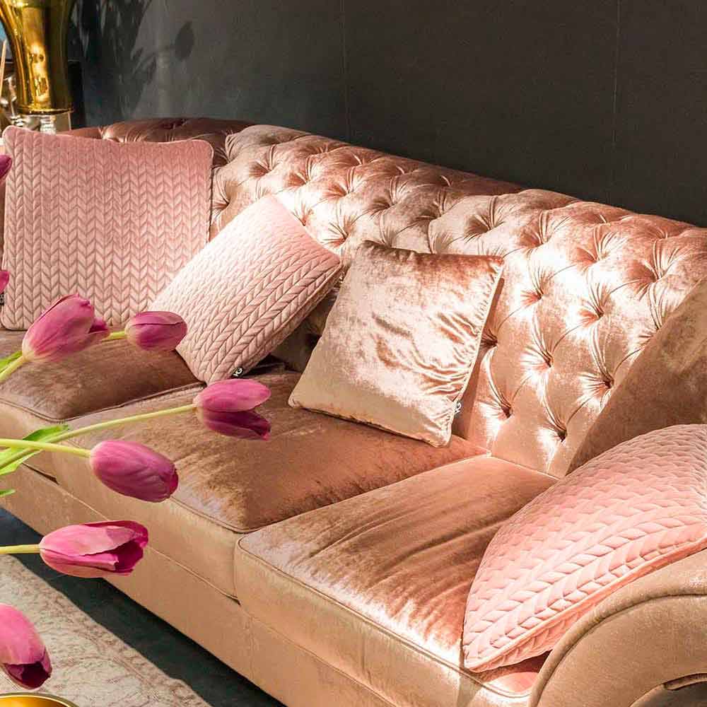 Sofá de tecido linear Baloo, com estofamento abotoado, feito na Itália.