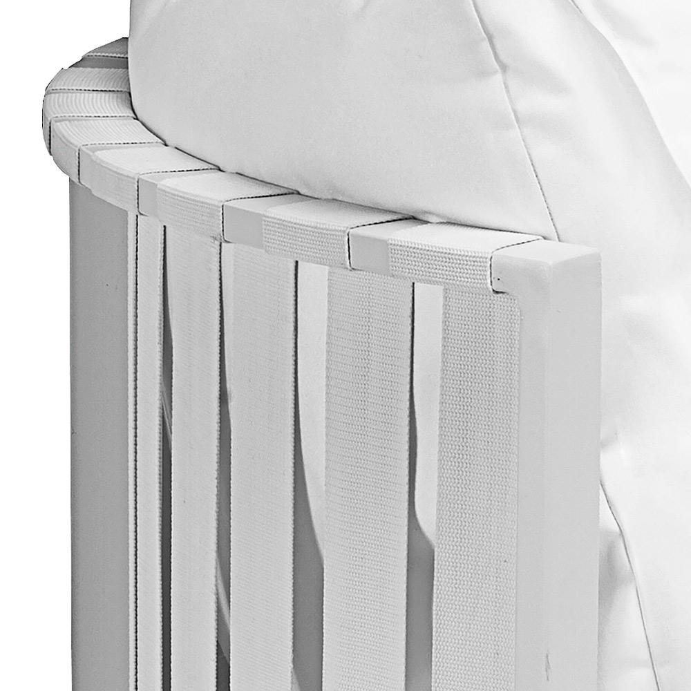 NB: Uma capa protetora também está disponível a pedido, que recomendamos para períodos de não utilização ou em caso de chuva. Além disso, o tecido das almofadas também está disponível em outros tipos e cores. Entre em contato conosco para uma cotação.