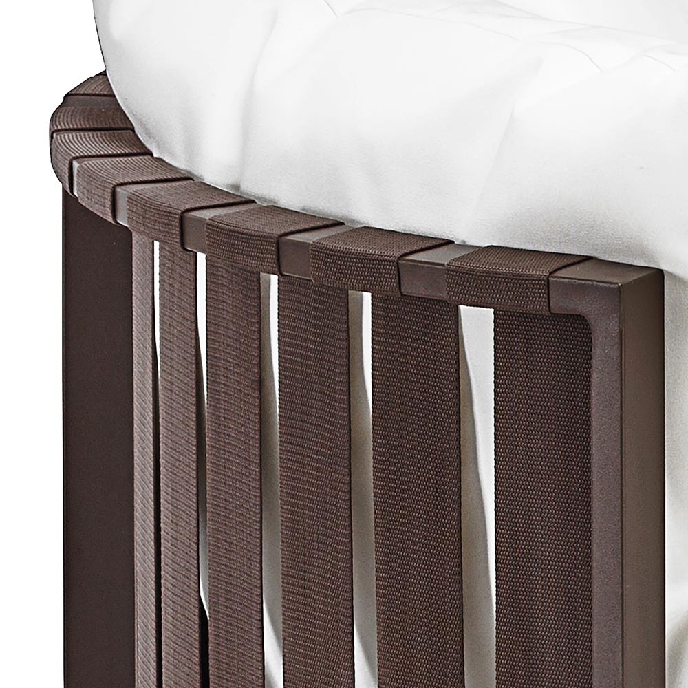 Sofá de jardim de design luxuoso em alumínio e corda com almofadas de tecido em vários acabamentos.