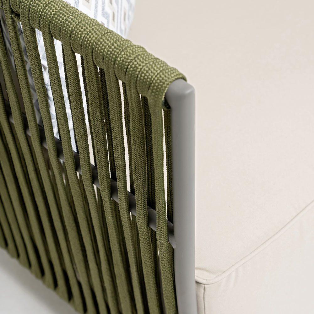 Graças à utilização de materiais especiais de alta qualidade, este sofá de exterior garante uma excelente resistência às intempéries, sujidade, pó e manchas.