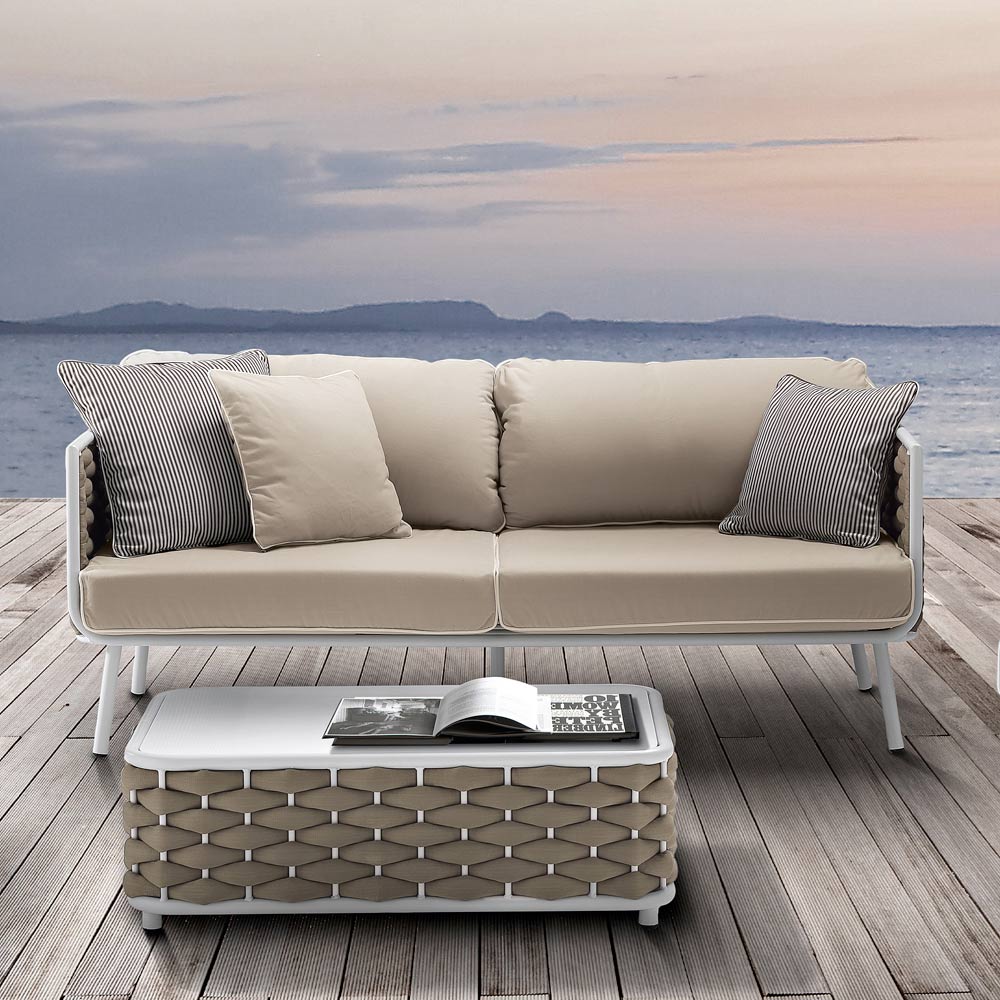 Graças ao uso de materiais especiais de alta qualidade, este sofá ao ar livre garante excelente resistência às intempéries, sujidade, poeira e manchas.