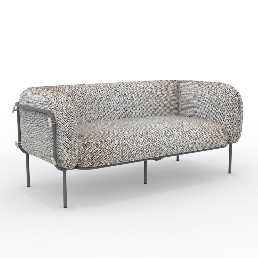 Sofá de jardim de 2 lugares com estrutura de ferro galvanizado com revestimento em pó e assento de tecido Fabricado na Itália