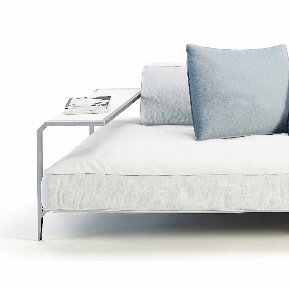 Sofá ao ar livre com mesa de apoio, em tecido aço e branco, design moderno made in Italy.